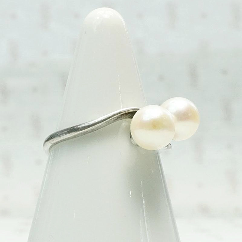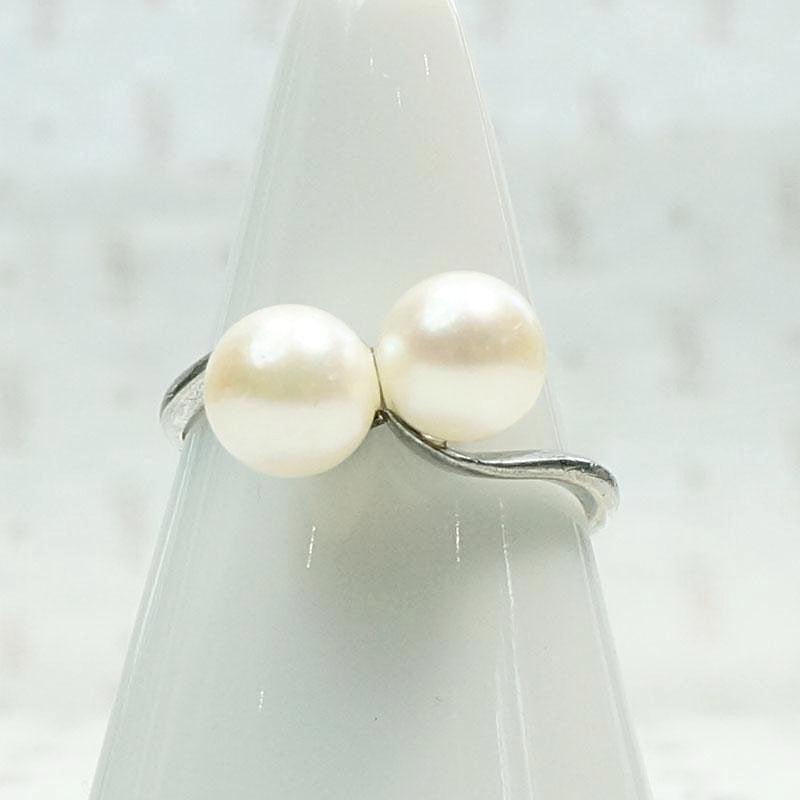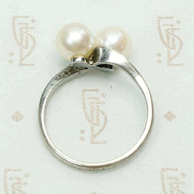Mid Century Crossover Ring in Silver & Pearls