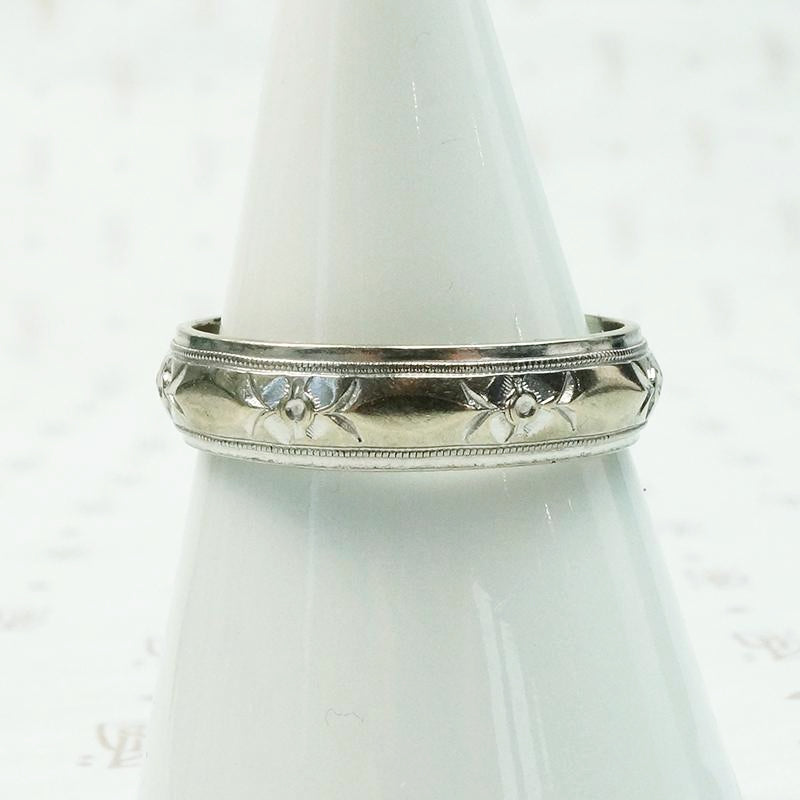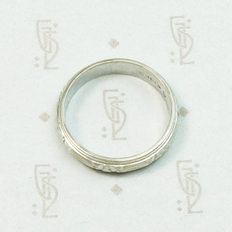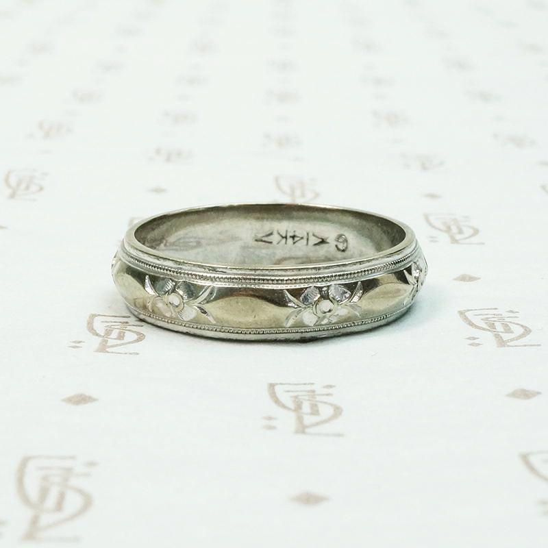Mid Century Engraved White Gold Wedding Band
