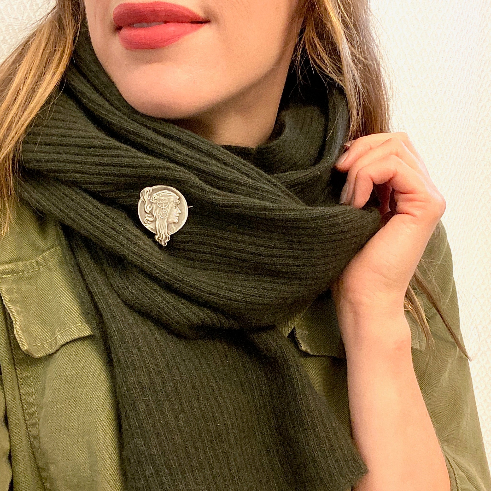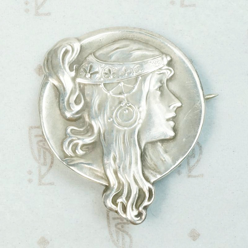 Mucha's Tête Byzantine - Brunette Brooch by Unger Bros
