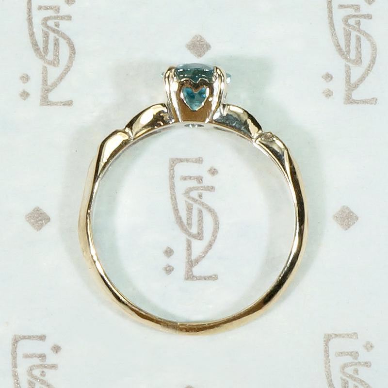 Natural Blue Zircon Solitaire with Hearts & Flowers
