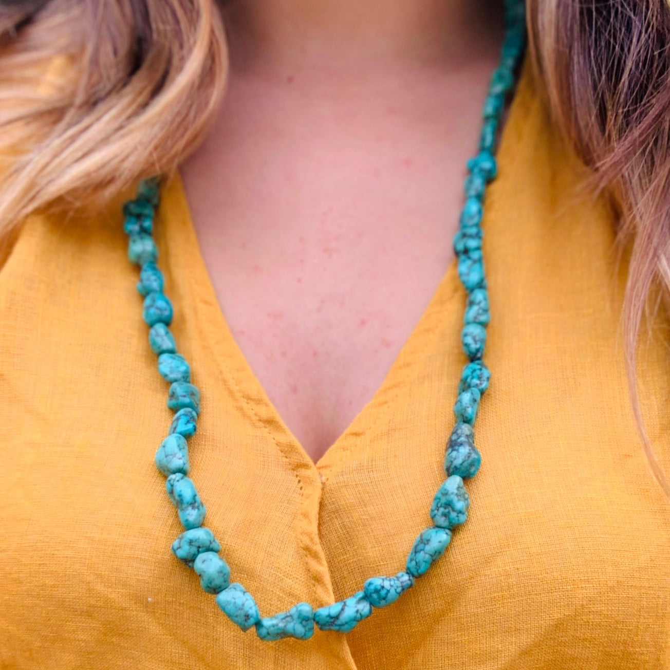 Natural Tibetan Turquoise Nugget Necklace