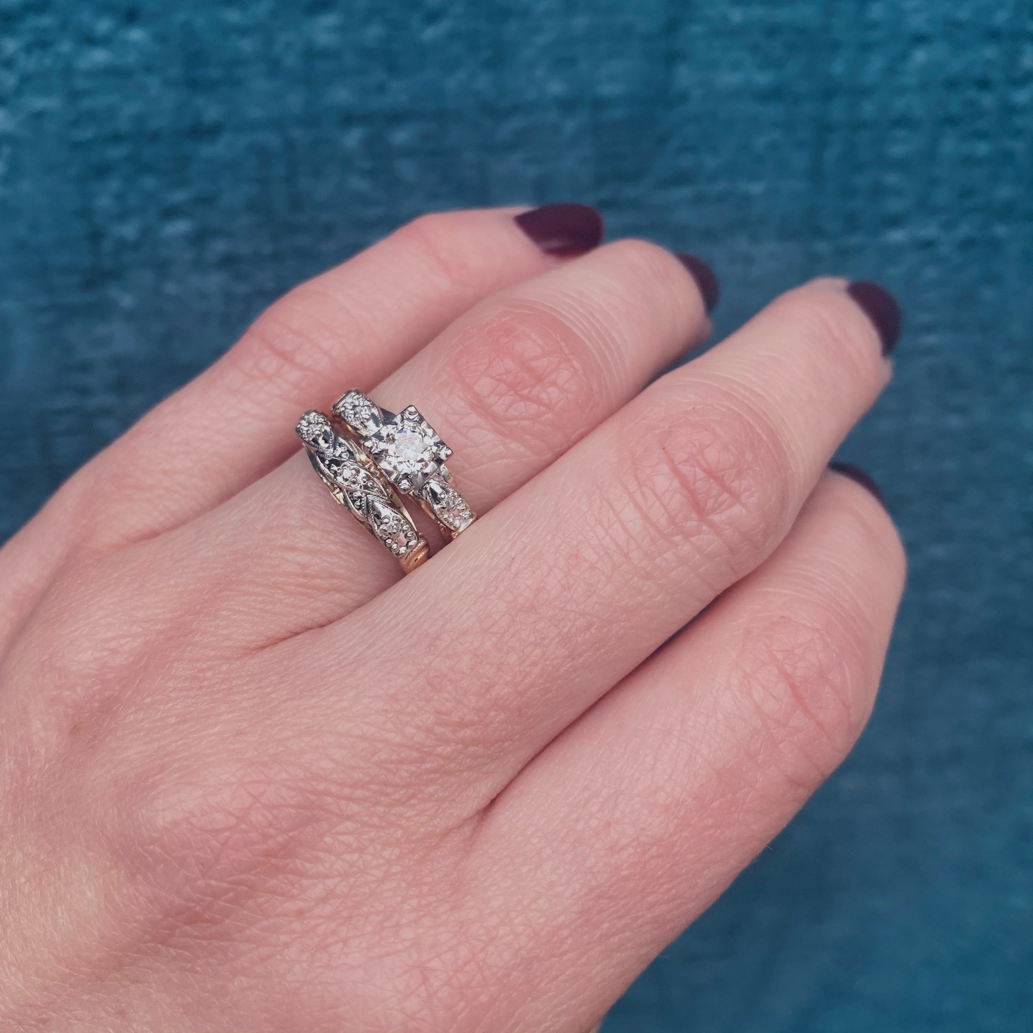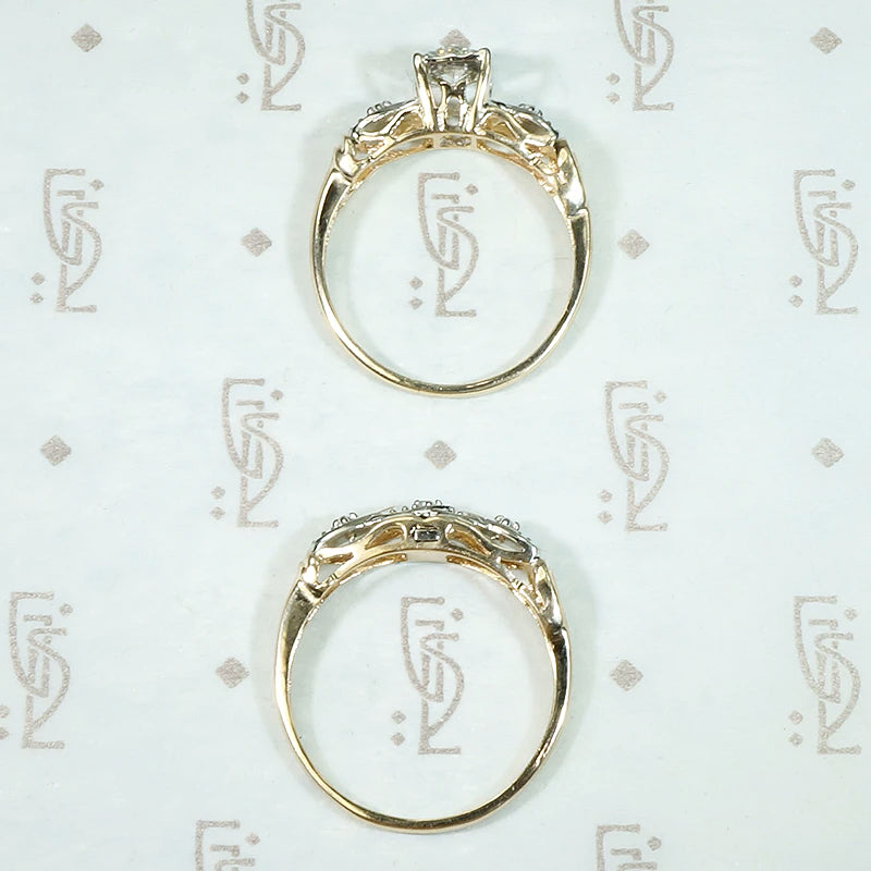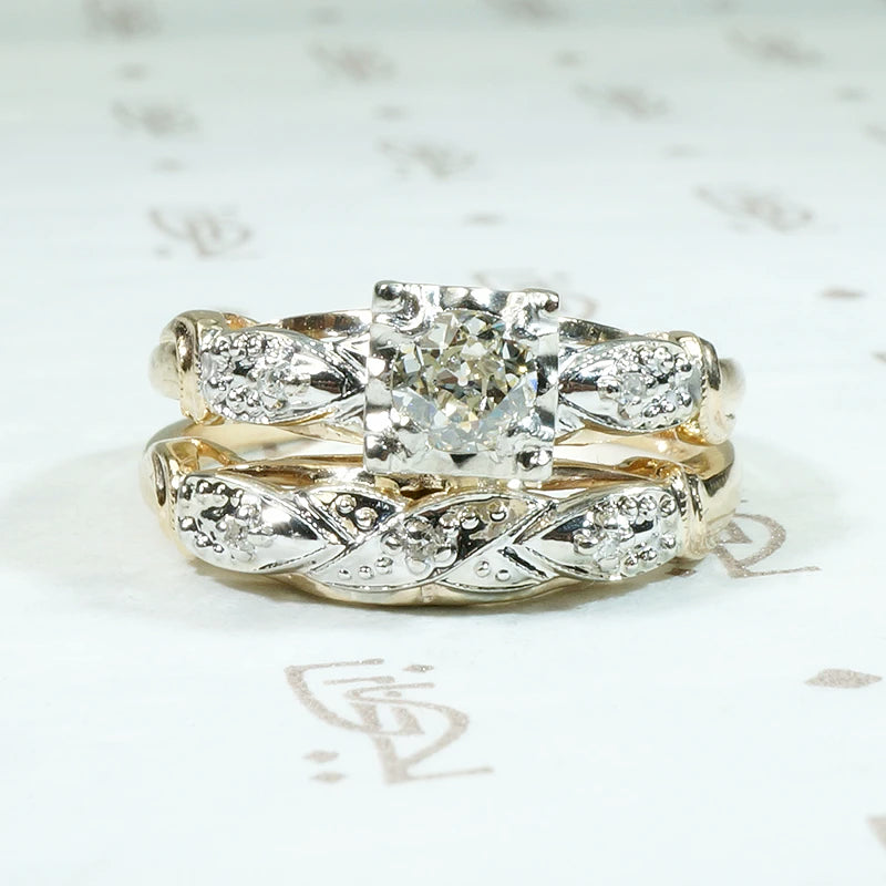 NOS Two-Tone Old Euro Diamond Wedding Set