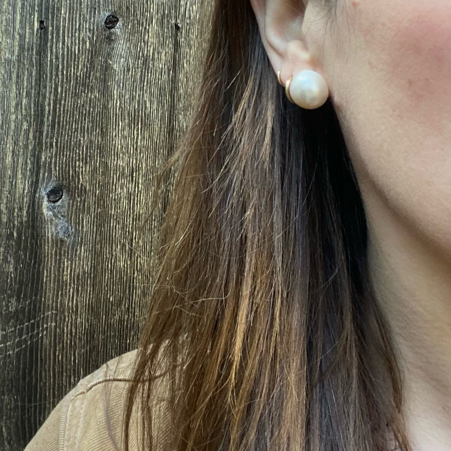 Details.....The pearls are 13.8mm in diameter and the profile of the earrings is 10.3mm tall. In Excellent Vintage Condition. You should always expect some wear on vintage and antique jewels, we consider it part of the charm.