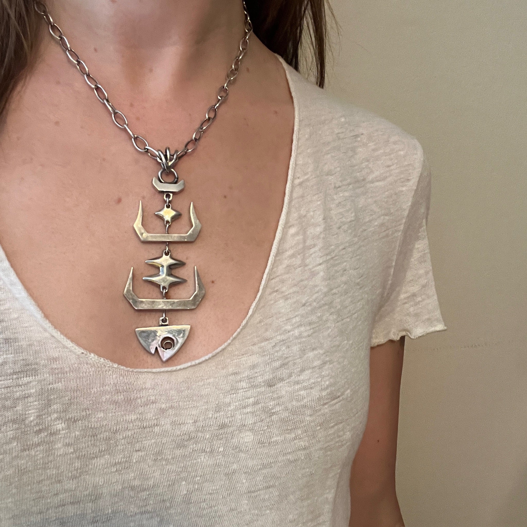 Punk Rock Taxco Sterling Fish Skeleton Necklace