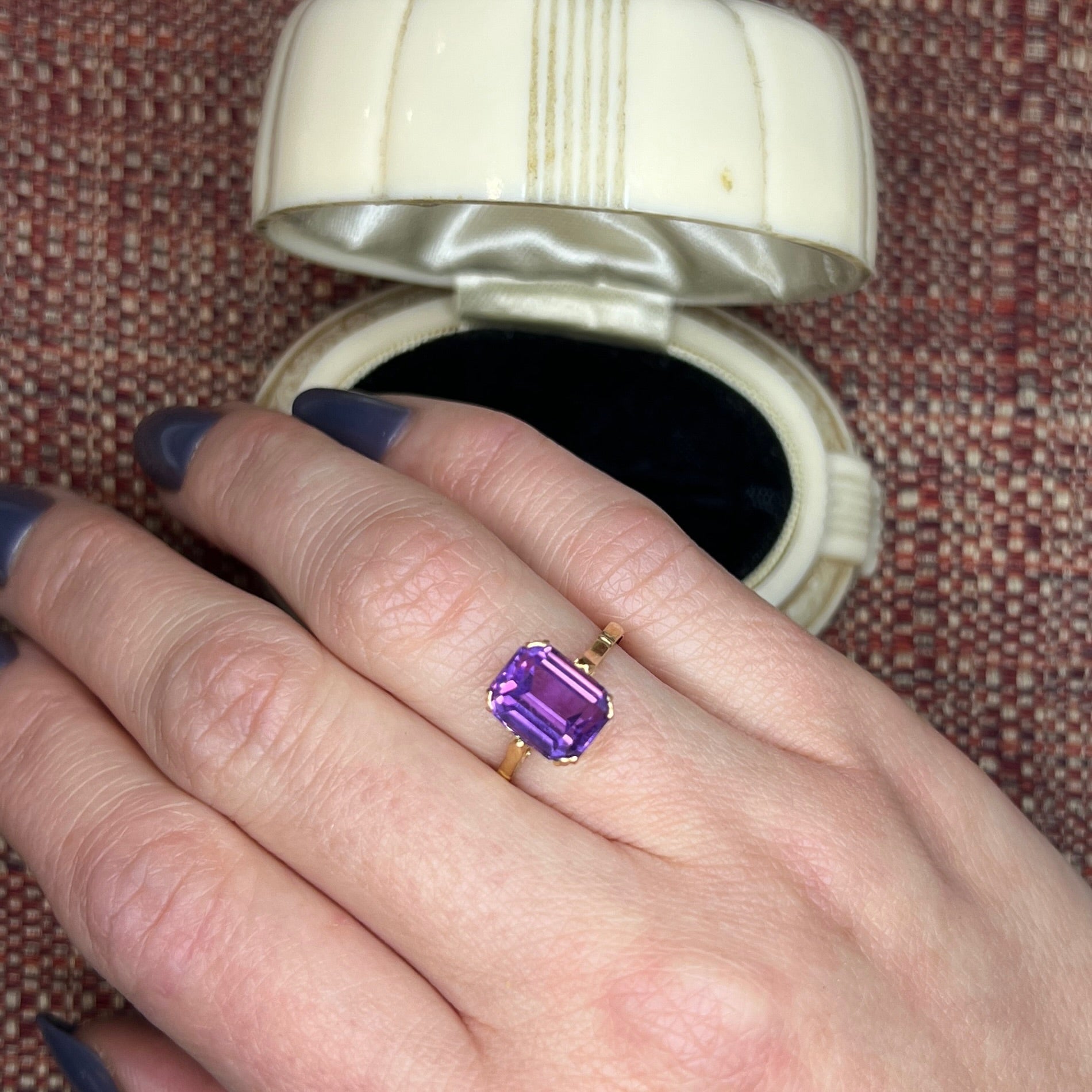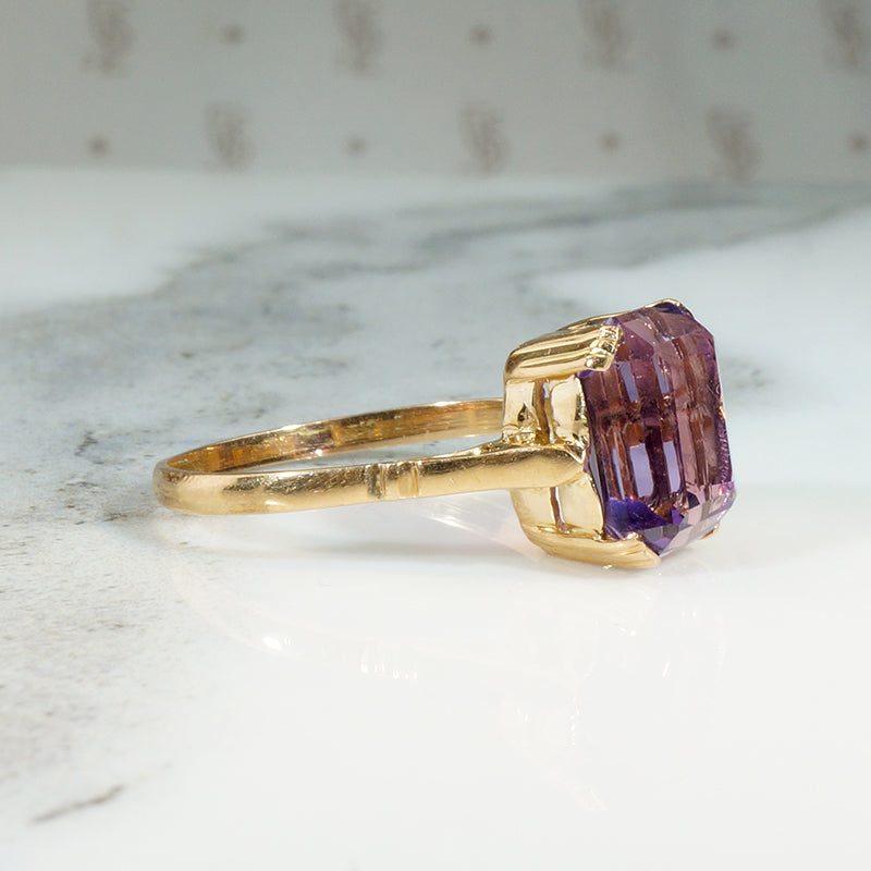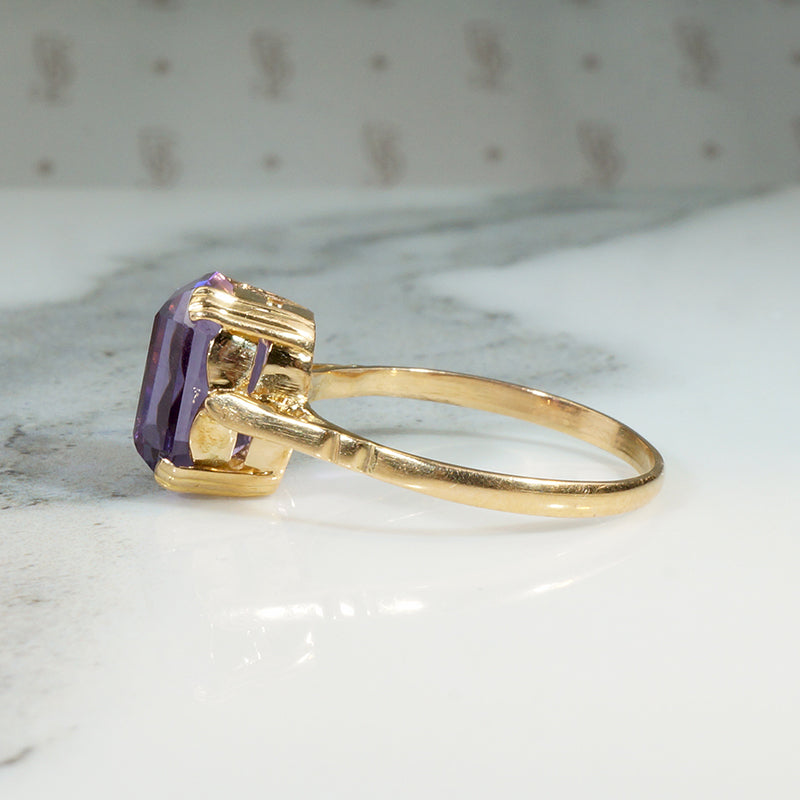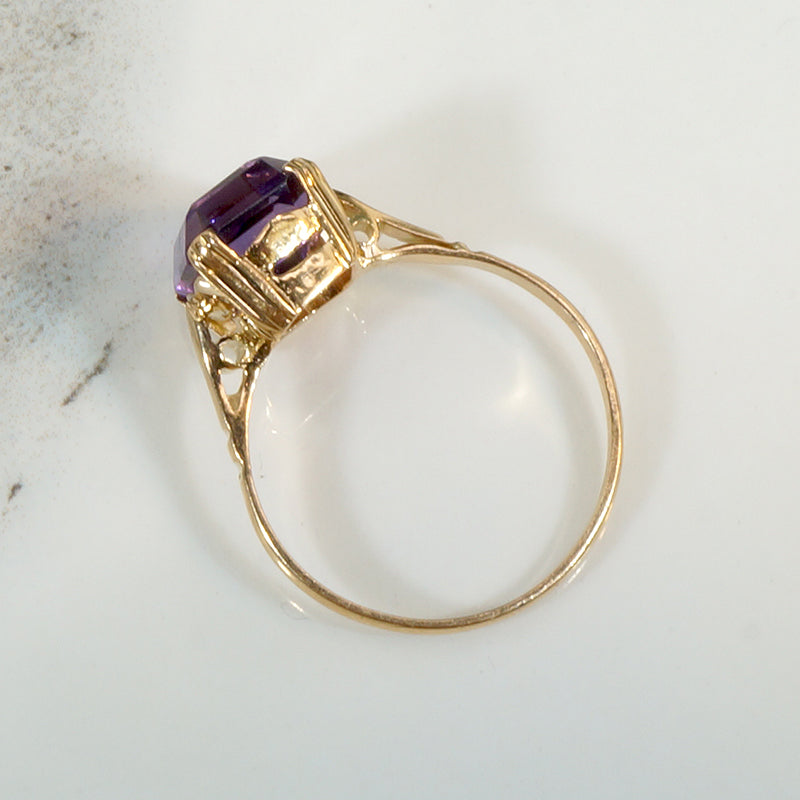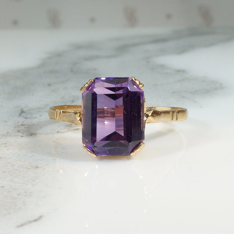 Regal Retro Amethyst & 18k Solitaire Ring