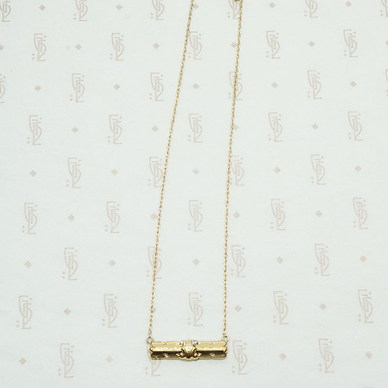 This pretty repoussé bar pendant would make a lovely addition to your necklace collection. Layered or alone the classic design always looks great.