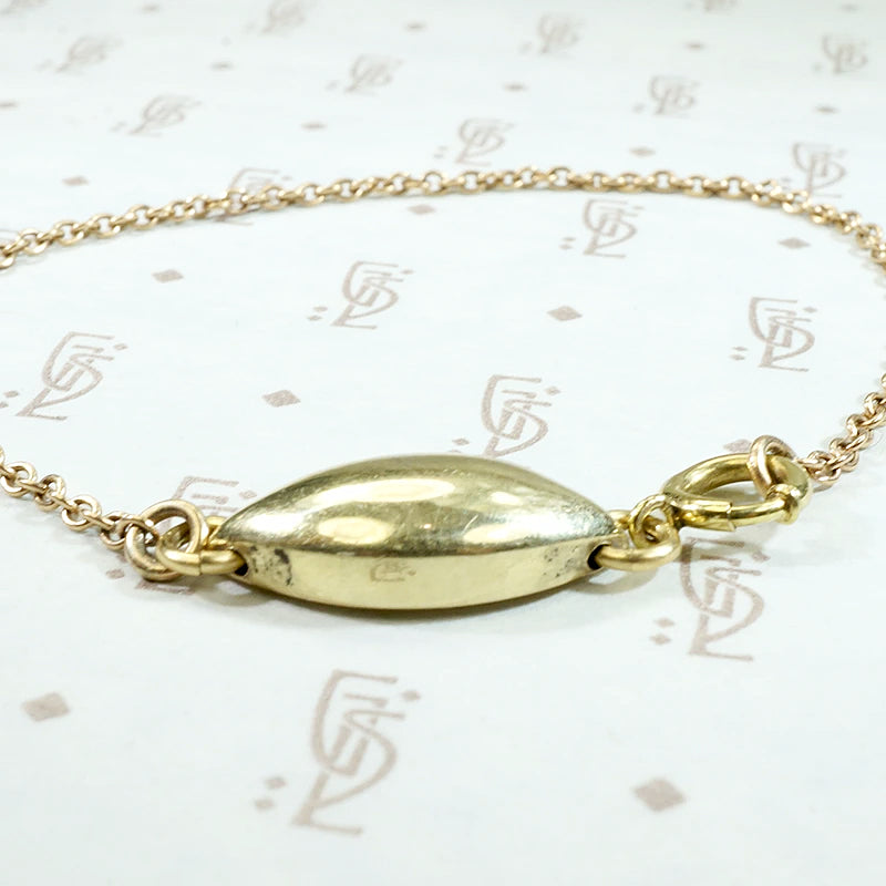 Details.....The navette measures 19.5mm by 9.3mm and the bracelet is 7.5" long. In Very Good Vintage Condition. You should always expect some wear on vintage and antique jewels, we consider it part of the charm.