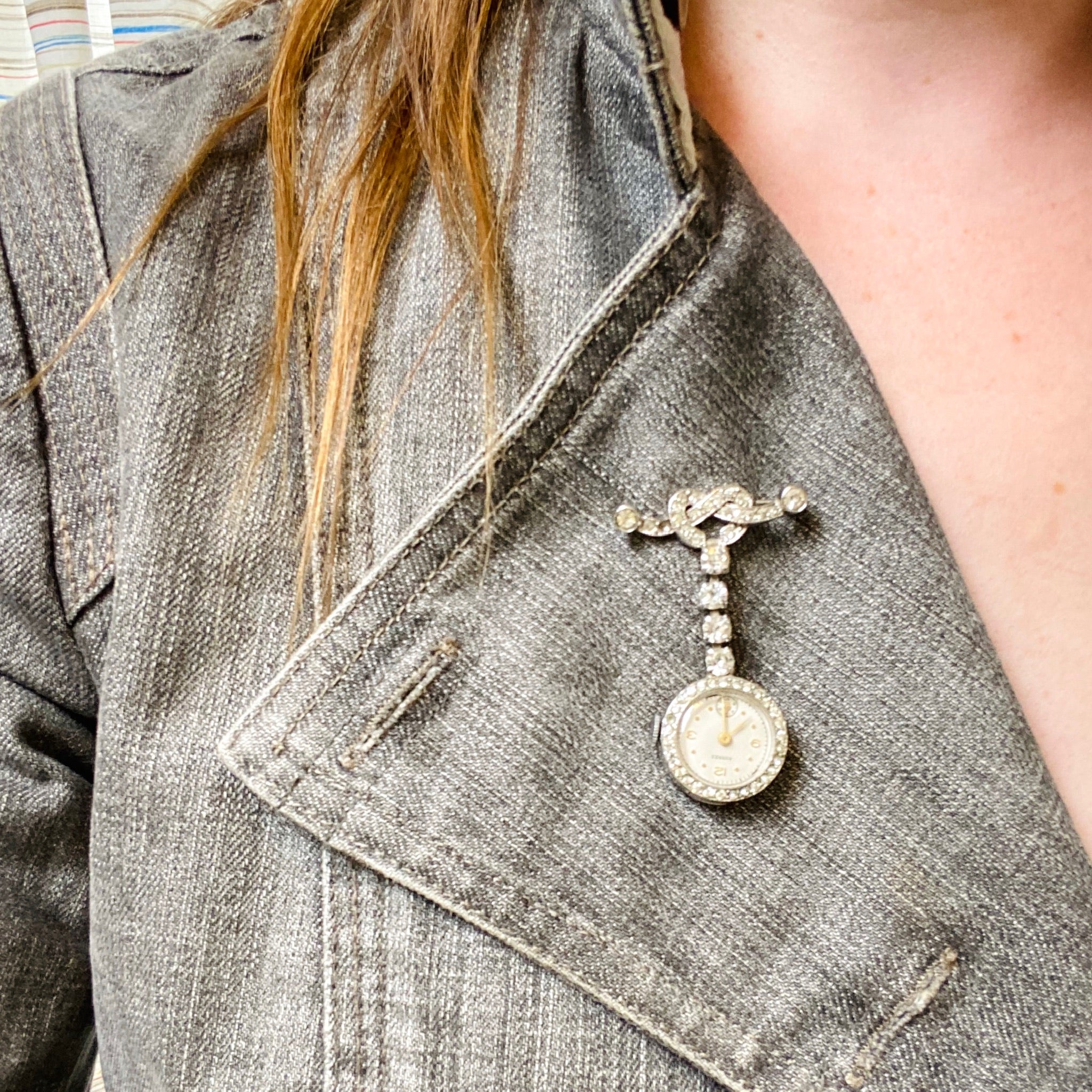 Details.....The brooch measures 1.29" across and 2.04" long. The watch measures 0.84" in diameter. In Very Good Vintage Condition. You should always expect some wear on vintage and antique jewels, we consider it part of the charm.