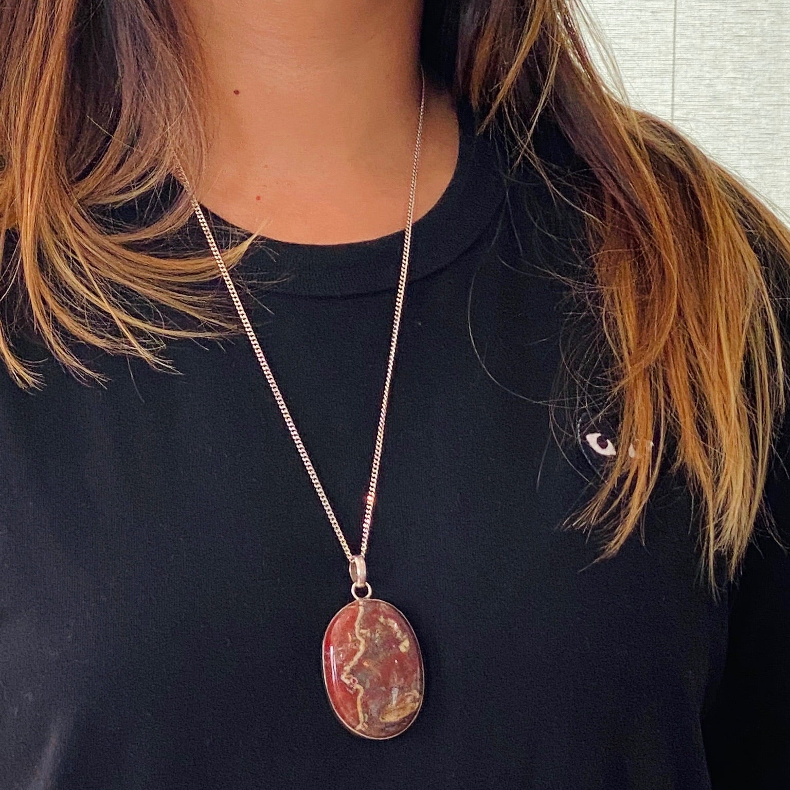 Rich Earth-Toned Jasper Pendant in Silver