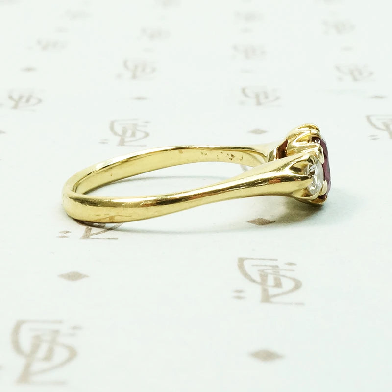 Rich Yellow Gold Ruby and Diamond Vintage Ring