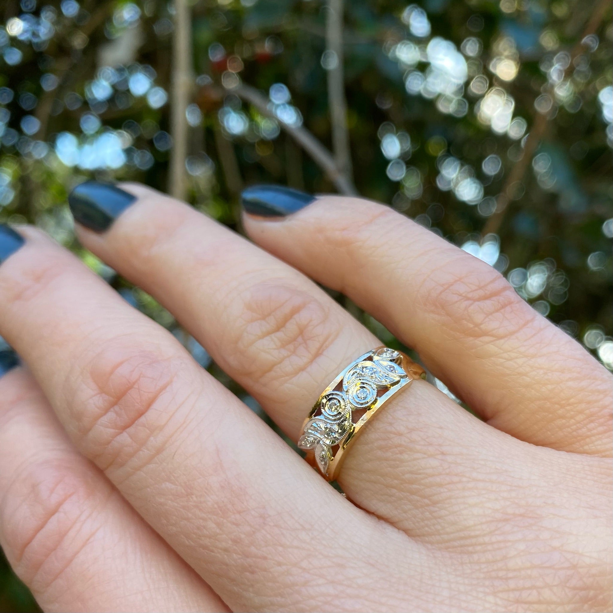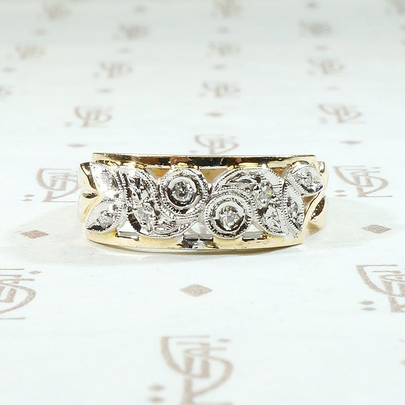 Romantic Roses Two Tone NOS Wide Diamond Band
