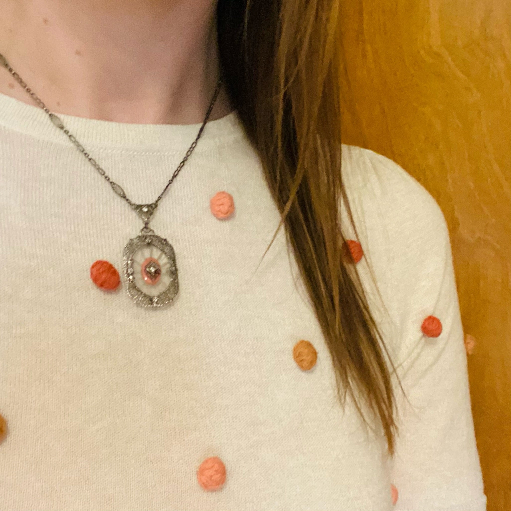 Details.....The necklace has a wearable length of 16.5". The pendant measures 1.80" long by 0.92" wide. In Very Good Vintage Condition. You should always expect some wear on your vintage and antique jewels, we consider it part of their charm.