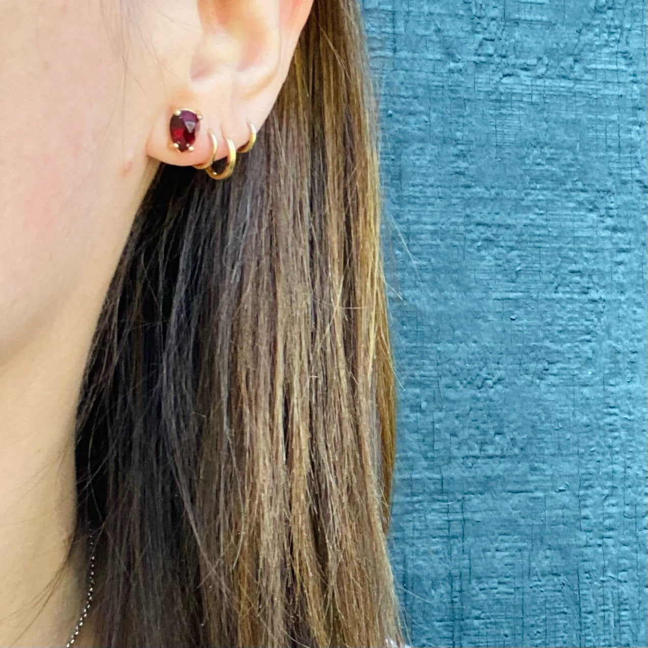 Luscious pear shaped rose cut rich red garnet stud earrings. The garnets have a 2.81 total carat weight. The antique garnets are set in 14k recycled yellow gold. Absolutely timeless, always in style, perfect for daily wear. Garnets circa 1880.