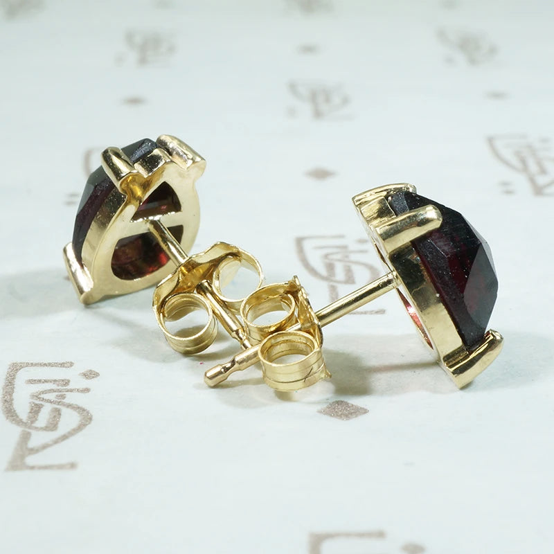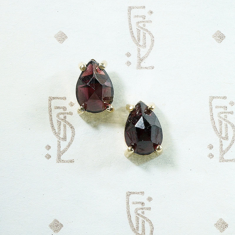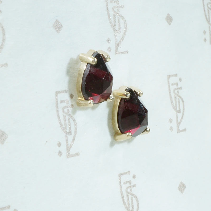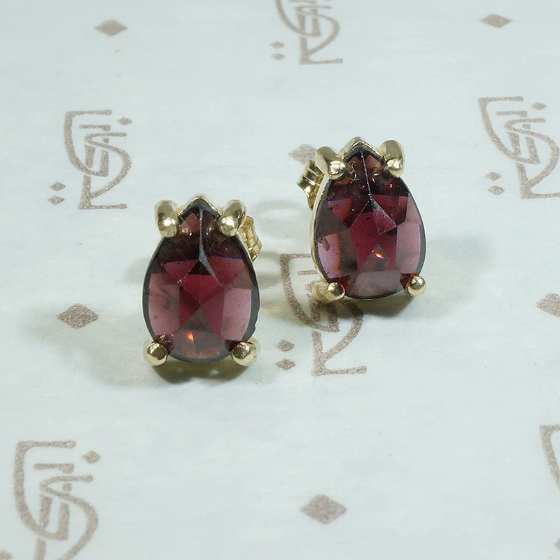 Rose Cut Pear Shaped Garnet and Gold Stud Earrings