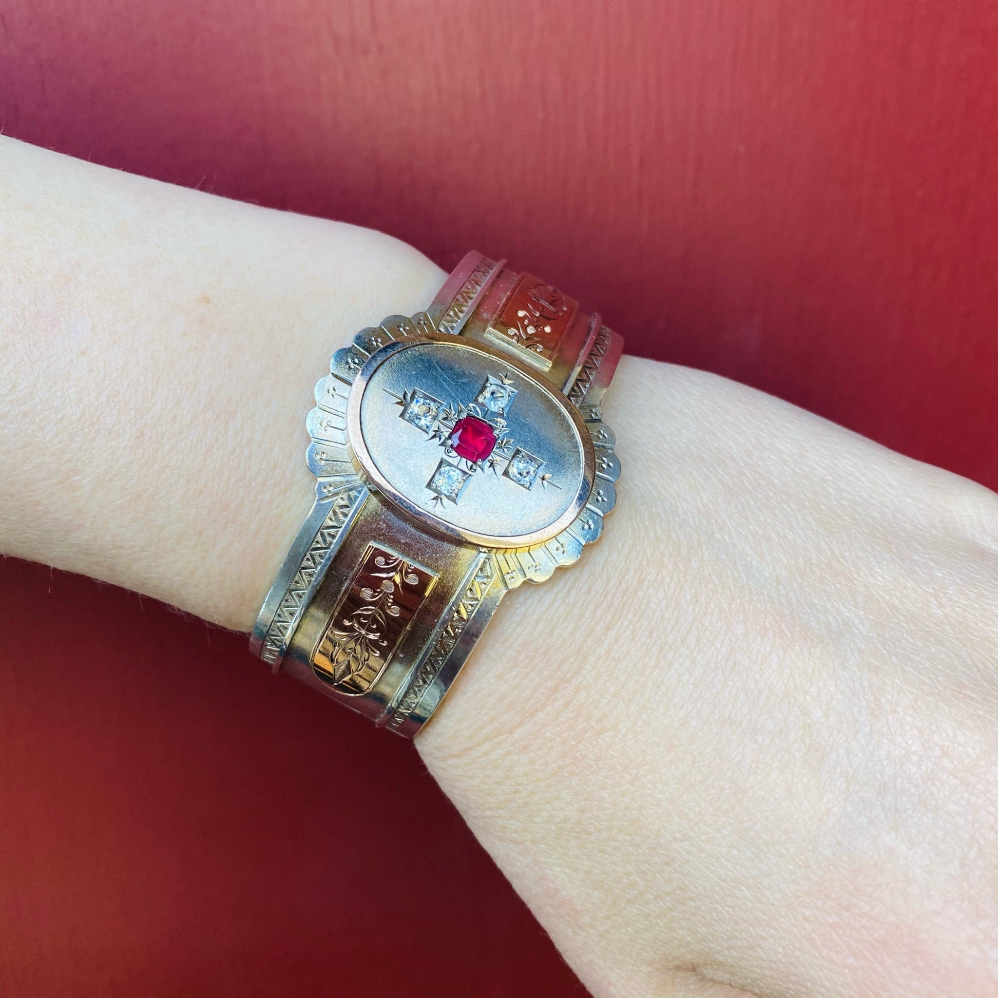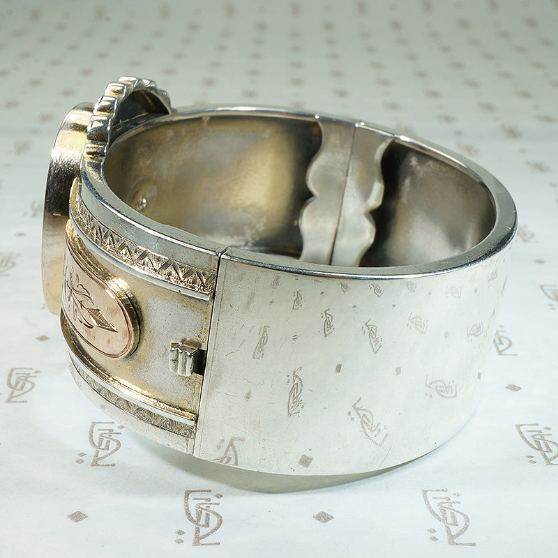 Rose Gold and Sterling 19thc Gem Set Cuff