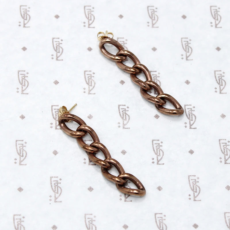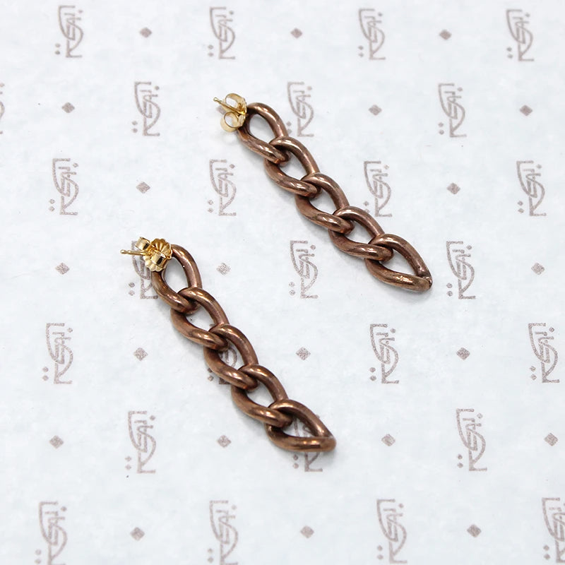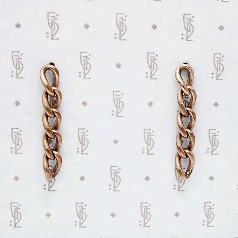 Lengths of vintage rose gold fill chain have been converted into a pair of stylish post earrings. The metal has a rich, mellow, old gold glow. Sophistication with an edge. These earrings will look great with any outfit.