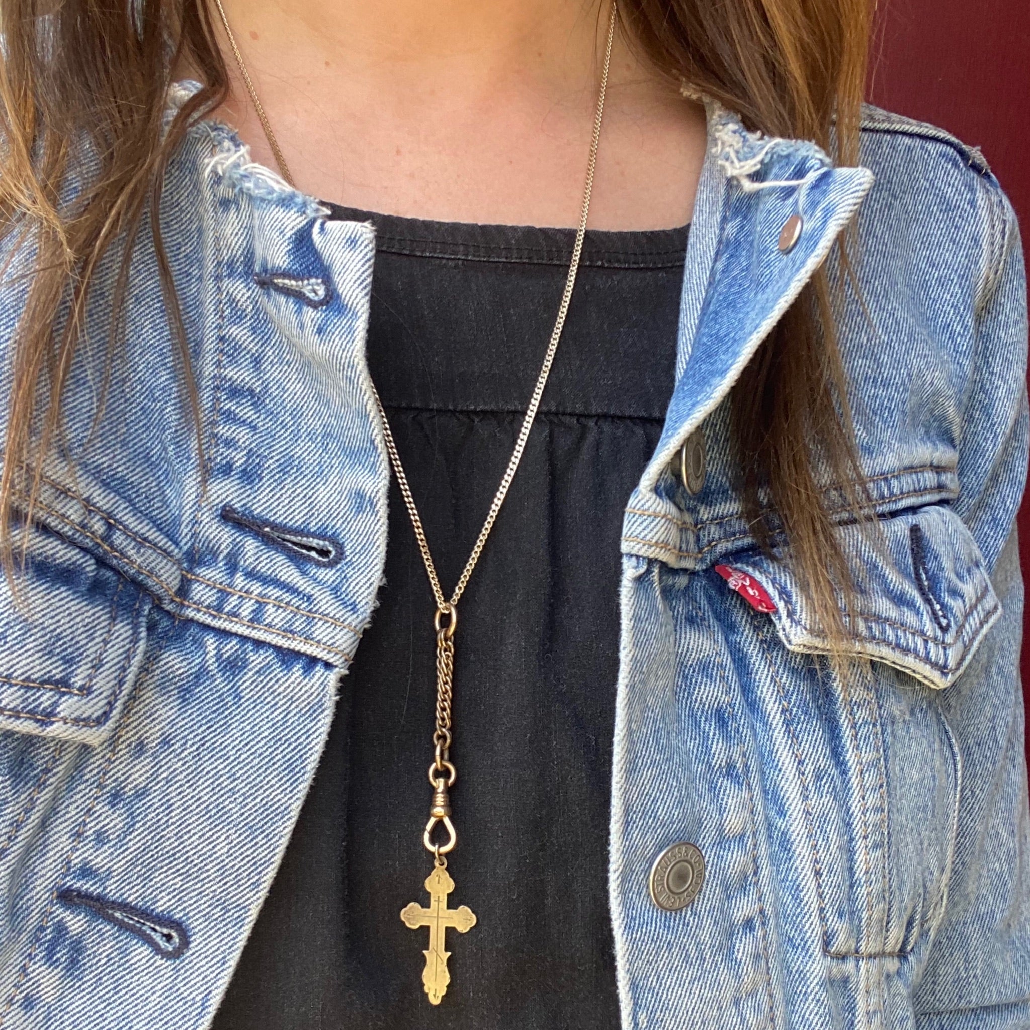 Details.....The cross measures 0.75" across and 1.65" long with bale. In Very Good Antique Condition. You should always expect some wear on vintage and antique jewels, we consider it a part of their charm.