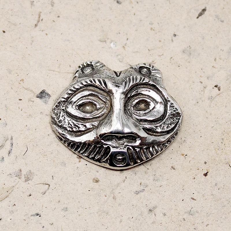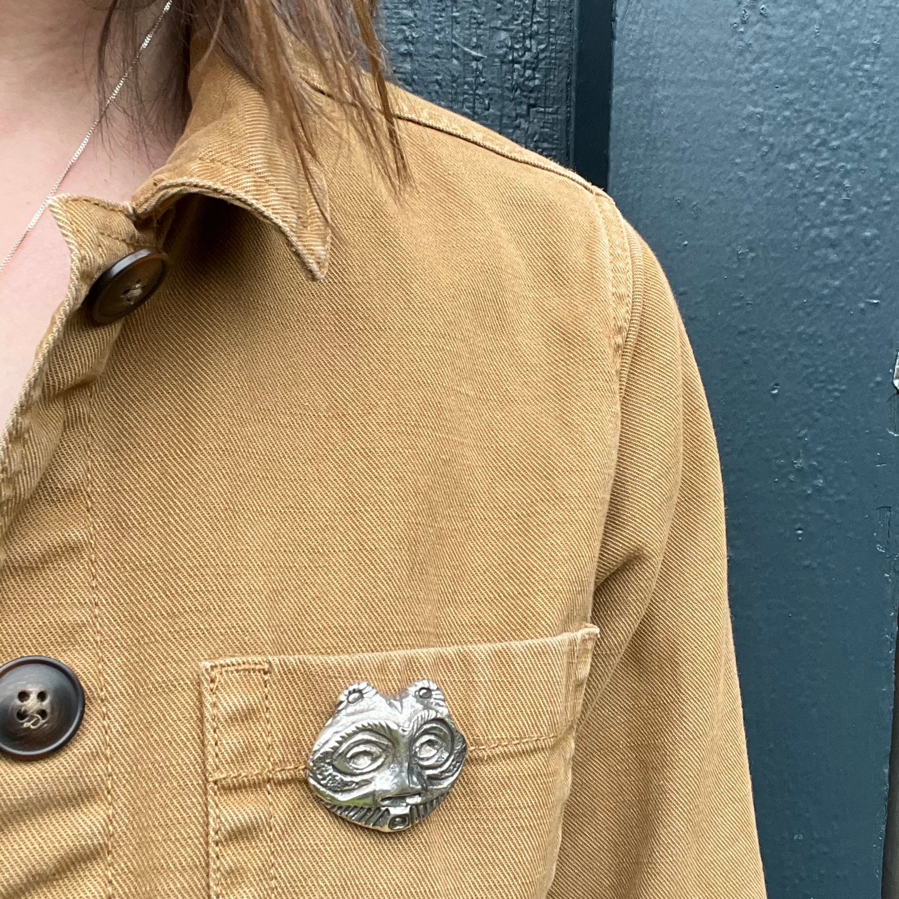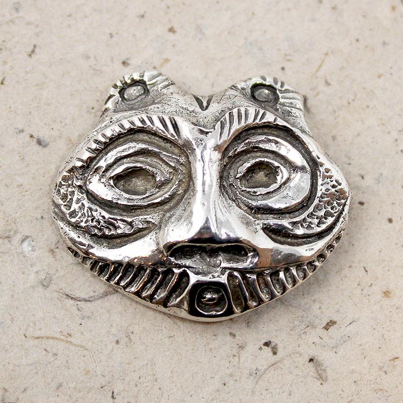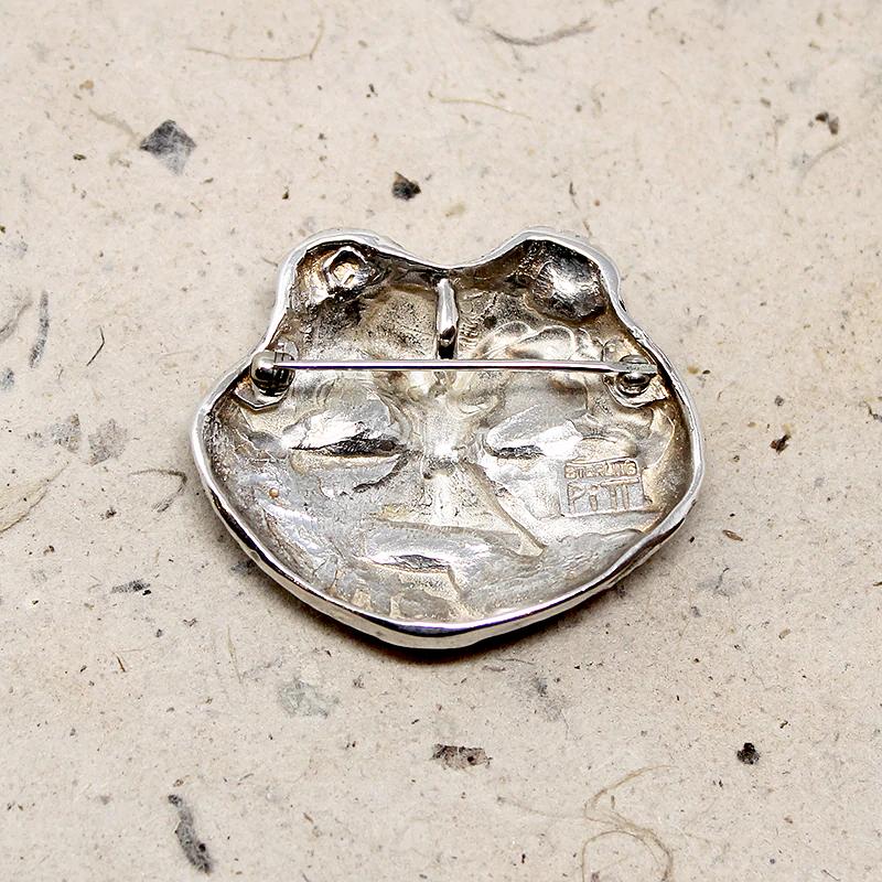 "She Who Watches" brooch by Pacific Northwest Native American artist Lillian Pitt. Beautifully made in sterling silver. Pitt is a contemporary artist and this piece is modern.