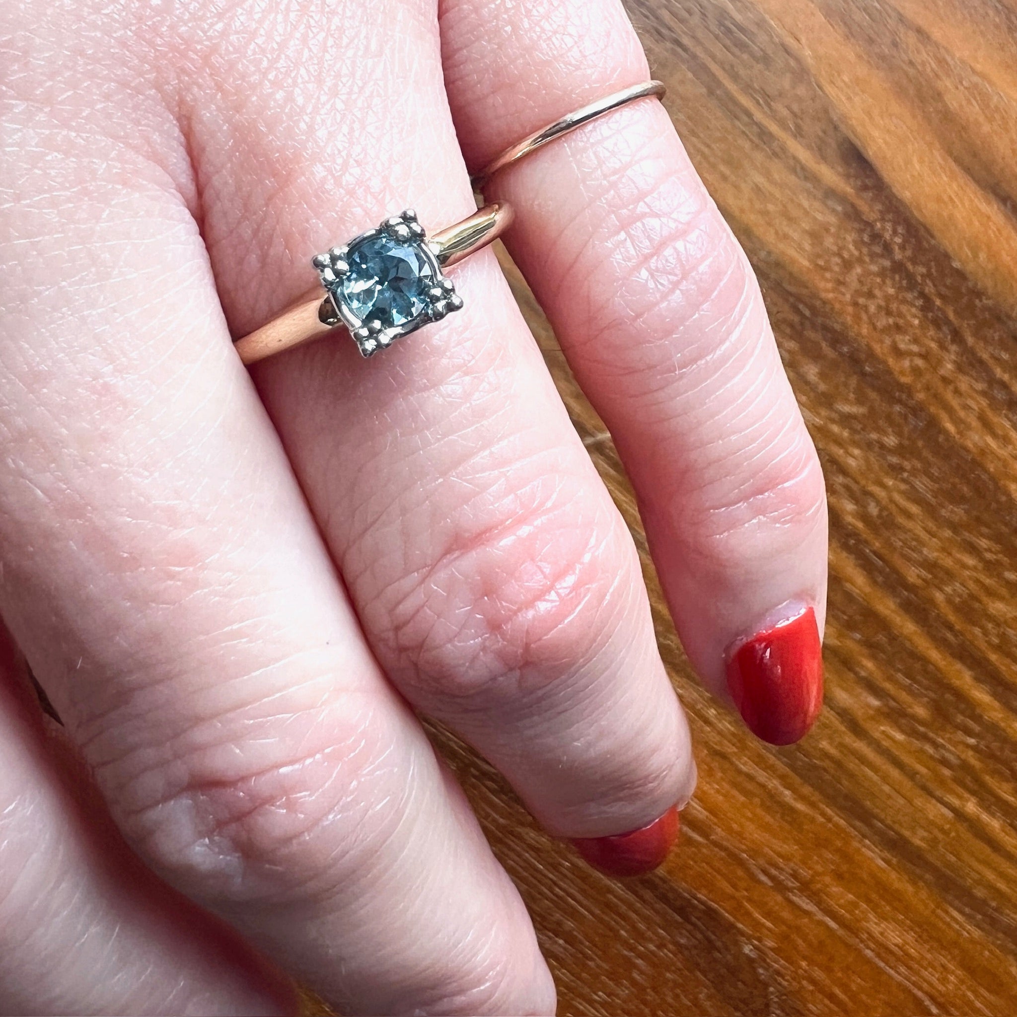 Shimmering Aquamarine in Palladium & Gold Solitaire