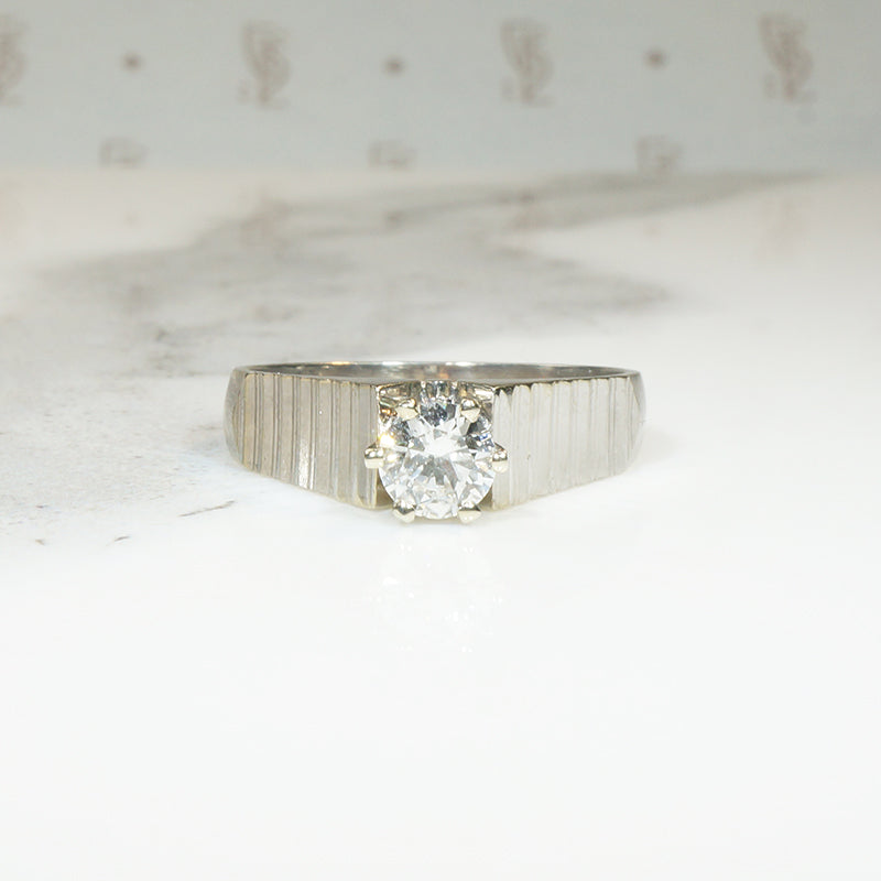 Shimmering White Gold 1970s Diamond Solitaire