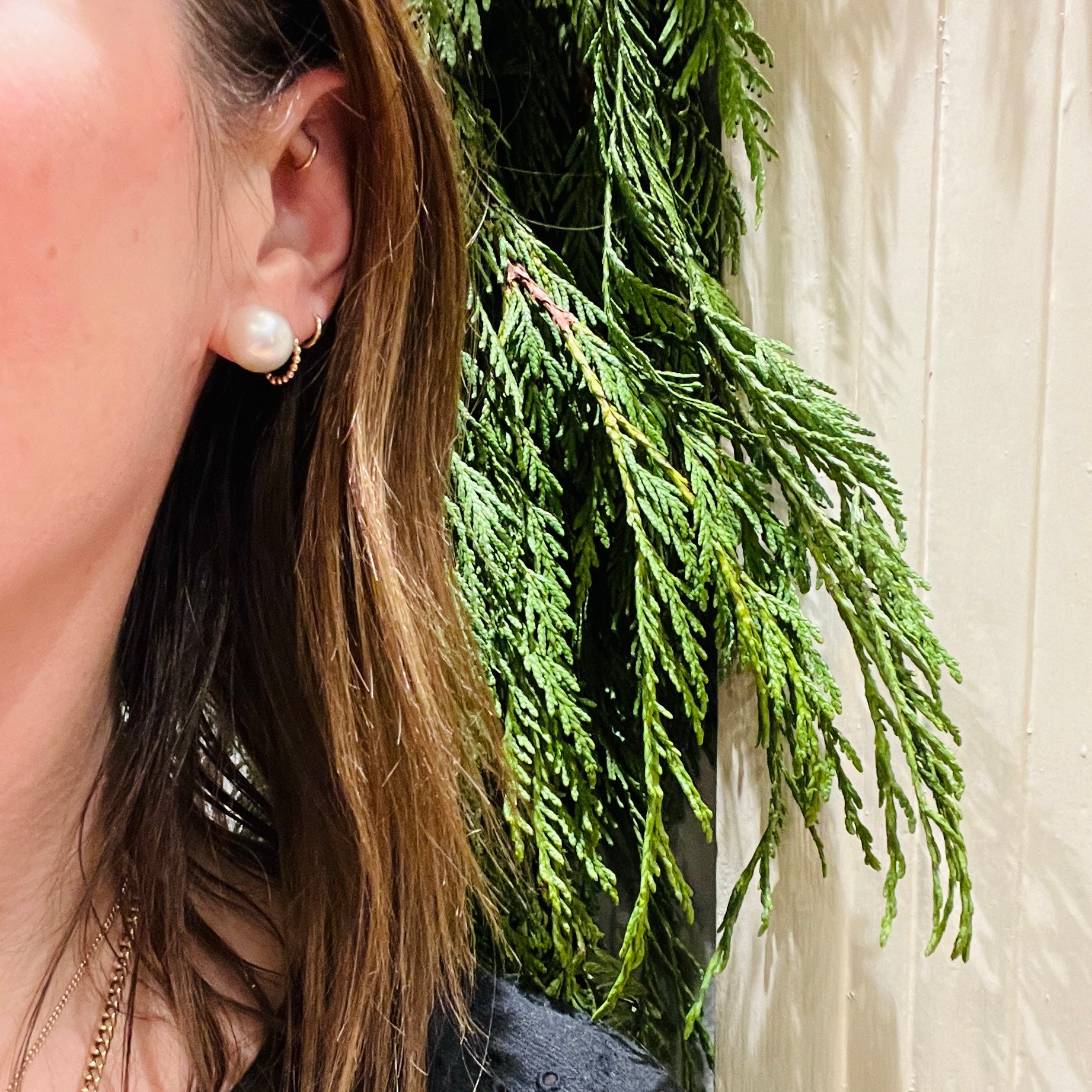 Gorgeous baroque pearl studs are glossy like French meringue. Baroque pearls are delightful, and their eccentric shapes have inspired the human imagination throughout history. The play of light on these large 12mm pearls brings out subtle silvery hues. They sit in 14k white gold pearl caps on posts and tension backs. The pearls are vintage, and the gold is recycled and sourced from a green-certified refinery. Glamorous strands of vintage pearls are THE hot gift this year; adding the perfect pair of pearl stud earrings would be the icing on the cake.