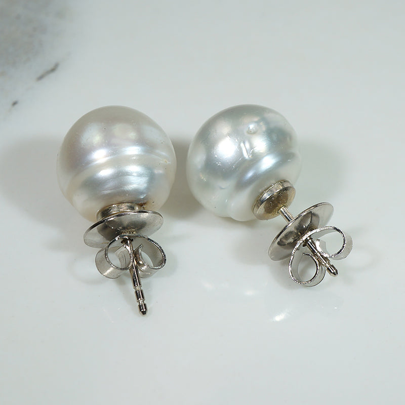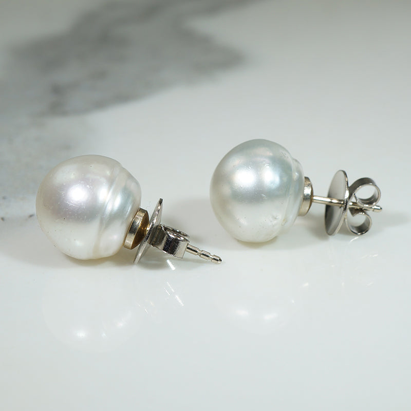 Silvery 12mm Baroque Pearl & White Gold Studs