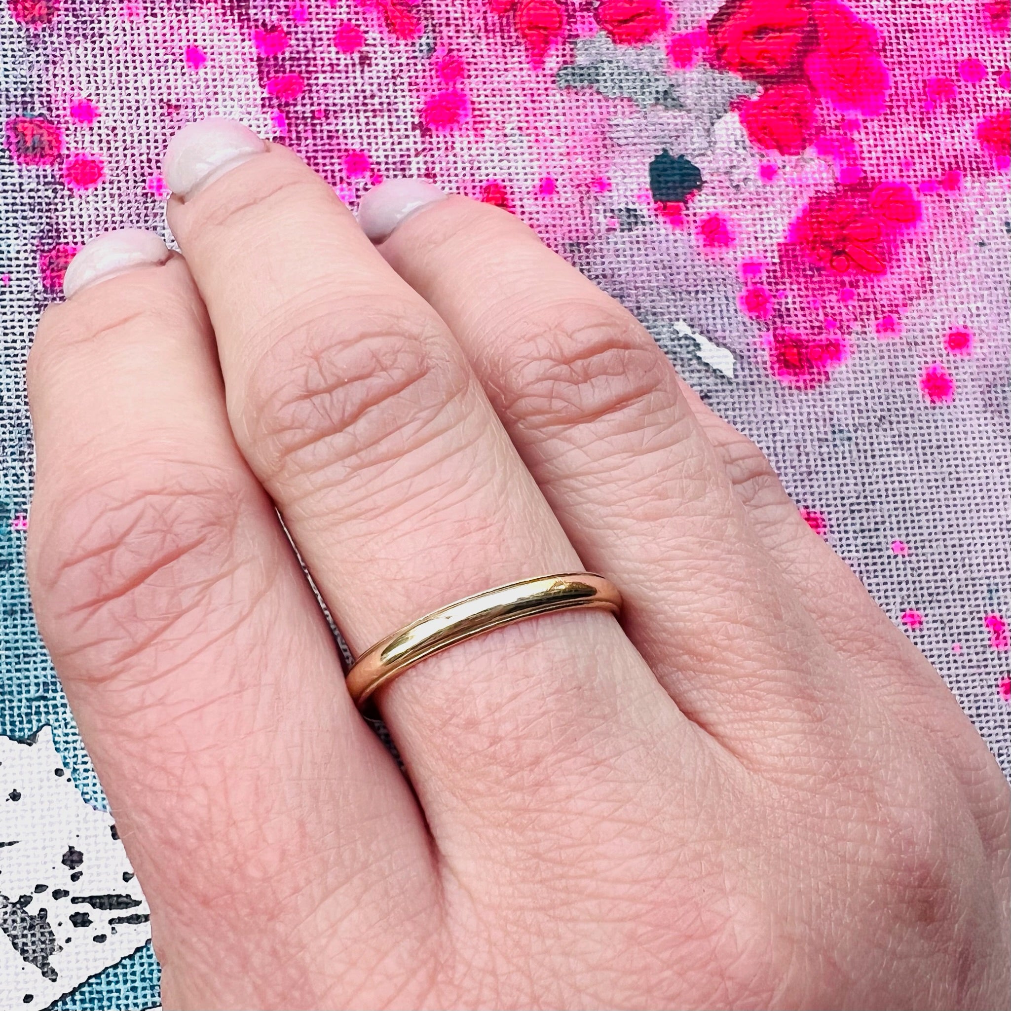 Slim Gold Wedding Band with Stepped Edge