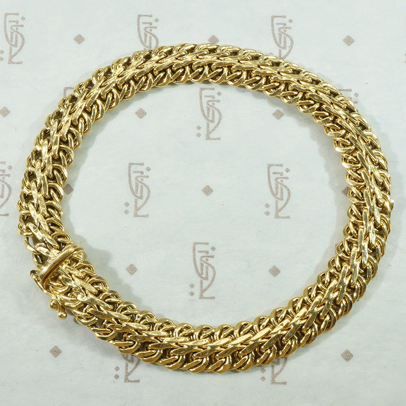 So many glorious gold items coming to the web shop! This luscious bracelet is 18k yellow gold Italian dating from the 1980's. Great movement and fluidity make it a pleasure to wear, it weighs 10.7 grams. Great alone or added to your wrist stack, the clasp hols nicely and there is a safety on the side for extra security.