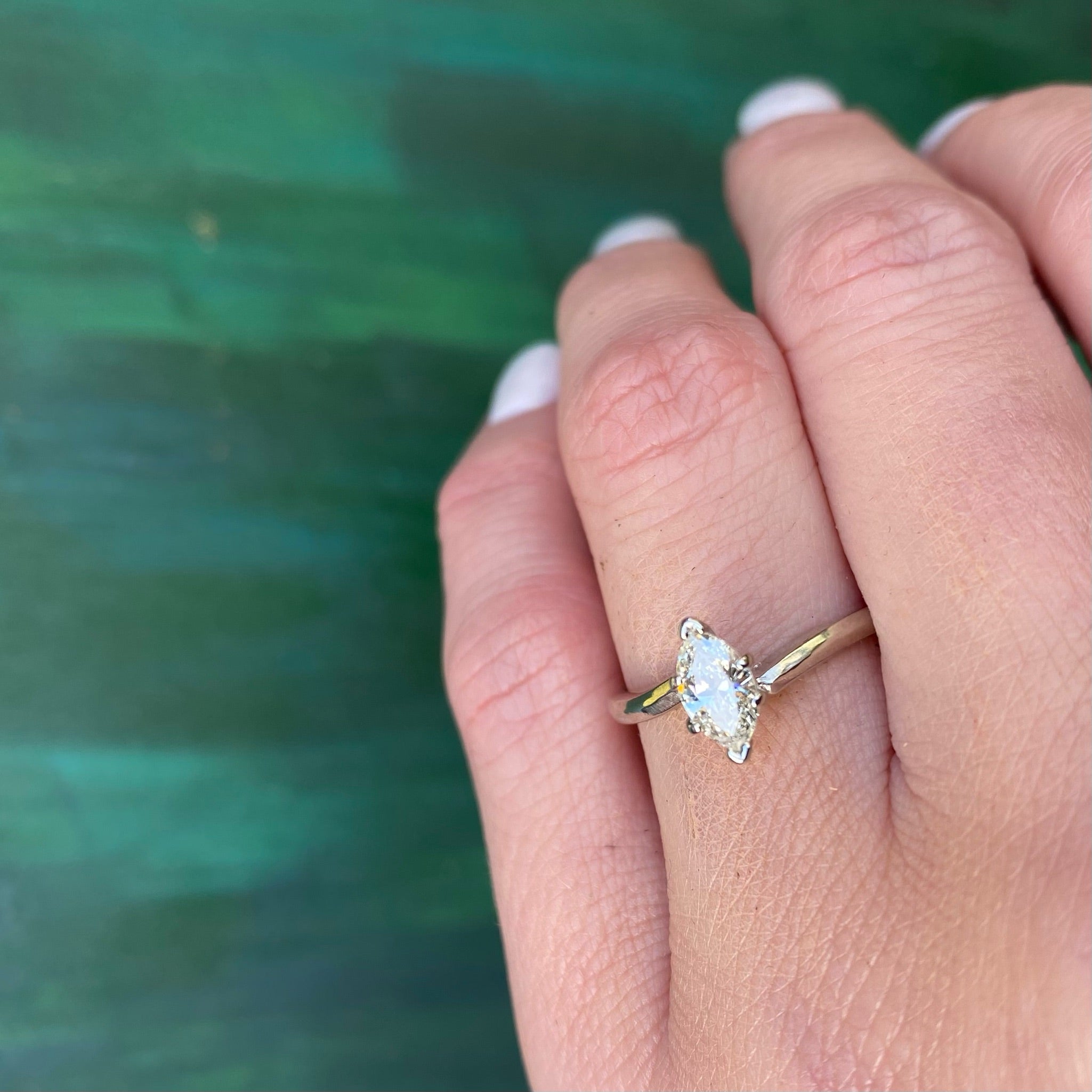 Sophisticated Mid Century Marquis Diamond Solitaire