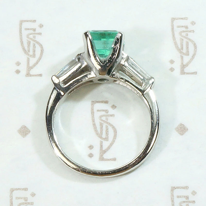 Spring Green Emerald & Baguette Ring in Platinum