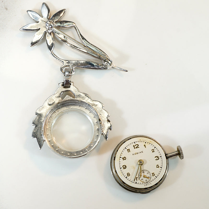Details.....The brooch measures 1.82" by 2.17", and the watch pendant measures 1.23" by 1.17". In Very Good Vintage Condition. You should always expect some wear on vintage and antique jewels, we consider it part of the charm.