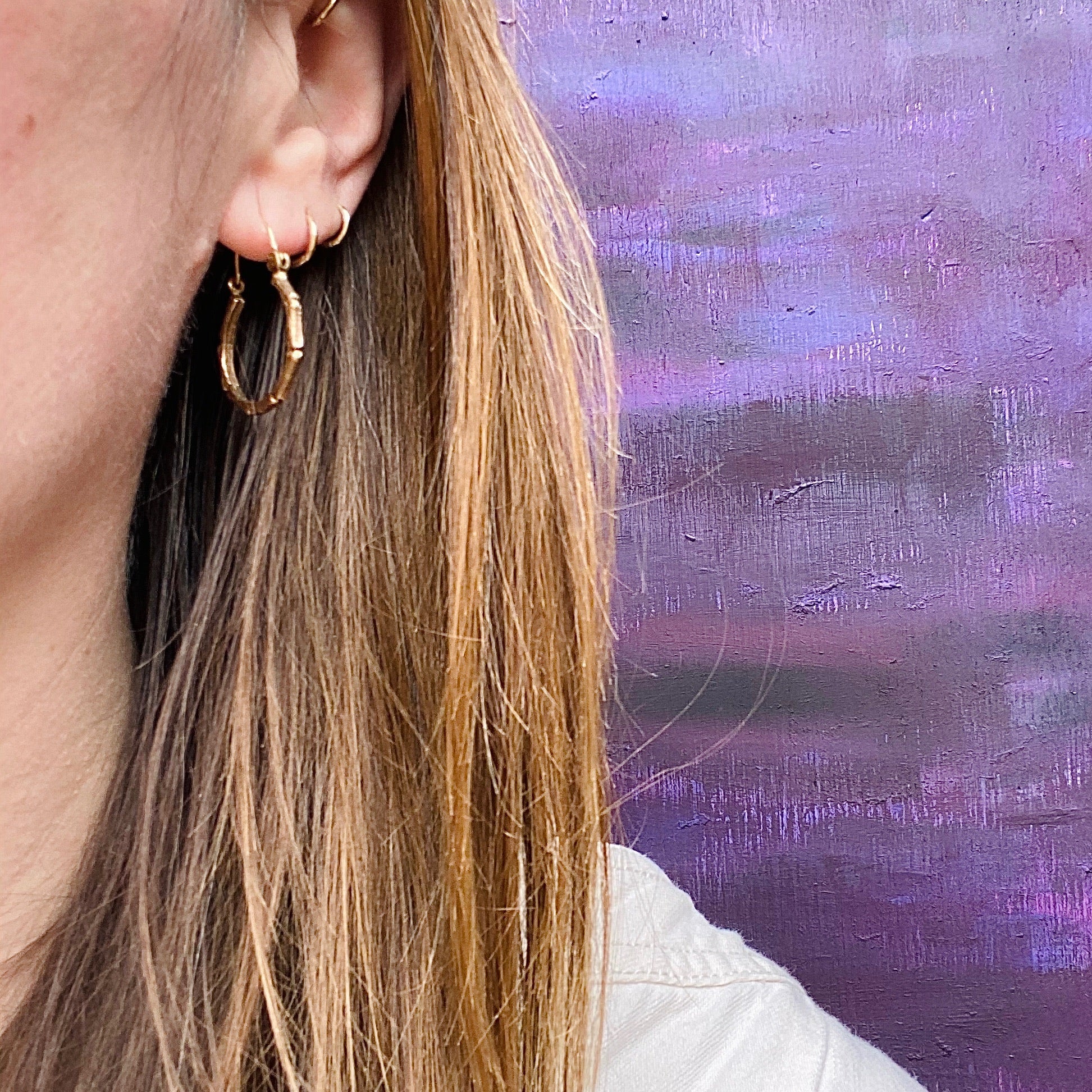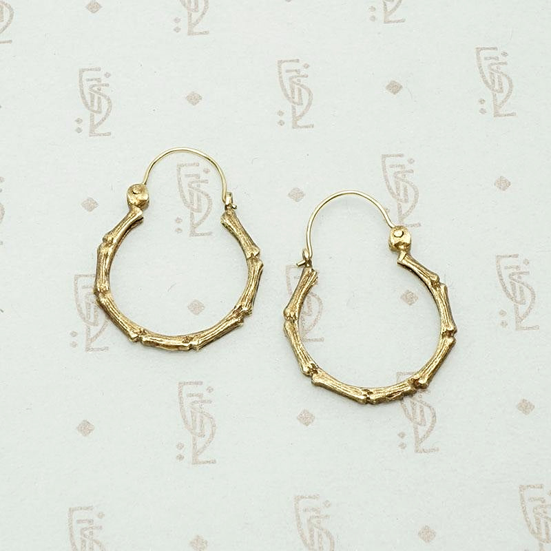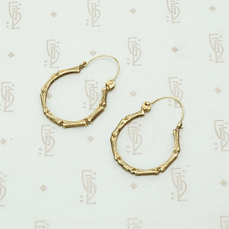 Summery Mid Century Bamboo Gold Hoop Earrings