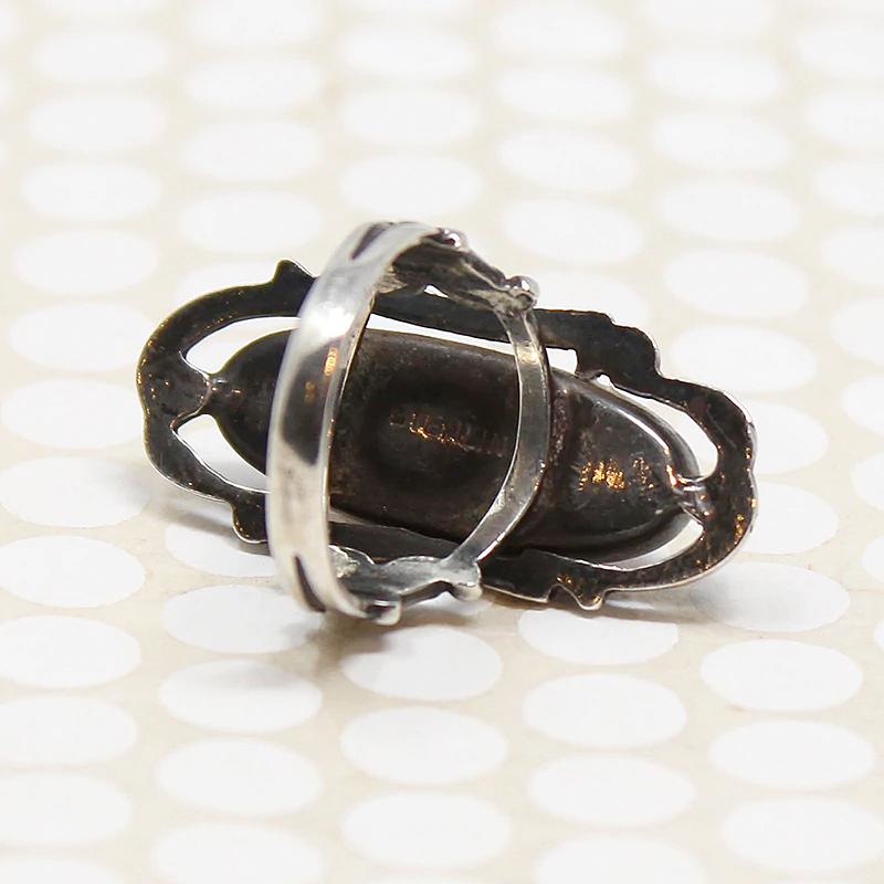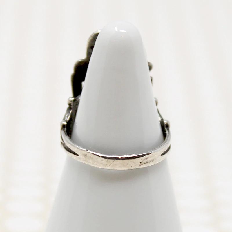 Details..... Currently a size 4.75. For a fee, silver rings can usually be sized within two sizes. Please contact us for sizing information about this ring. The top of the ring measures 12.3mm by 28.6mm, and the band tapers from 8.4mm wide at the shoulder to 2.3mm wide at the band. In Very Good Antique Condition. You should expect all vintage and antique jewels to show some wear, we consider it part of their charm.