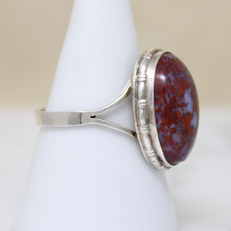 Superb Blue & Scarlet Jasper in Sterling Ring