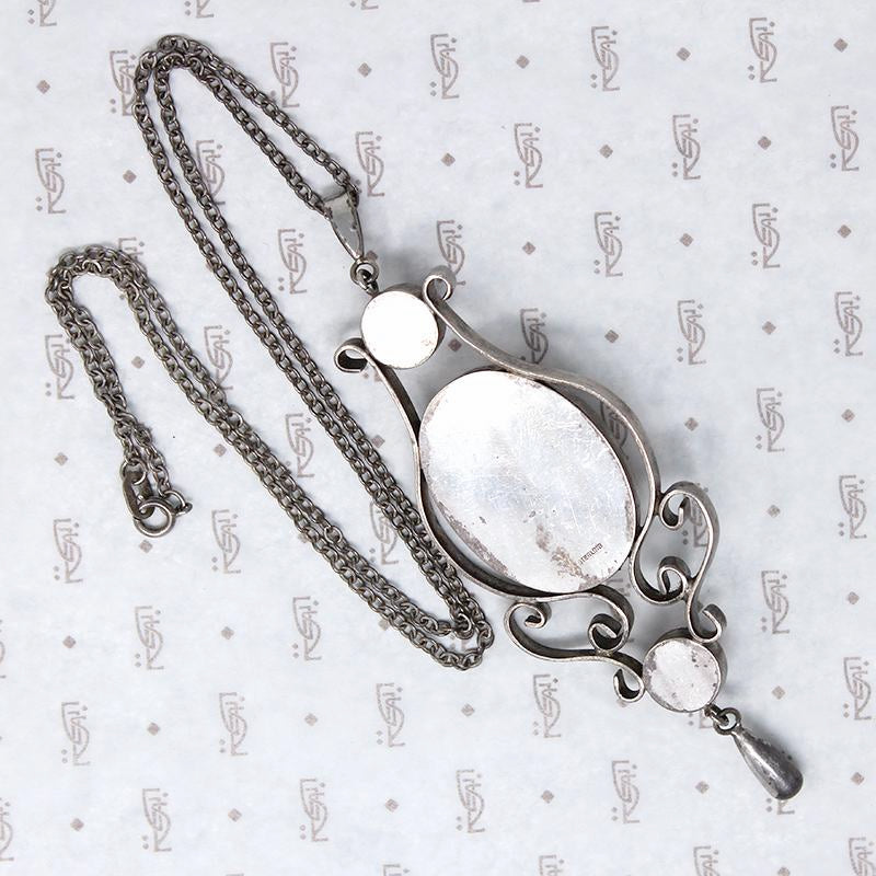 Details.....The pendant measures 5" long with bale and 1.58" wide. The chain is 24" long. In Very Good Vintage condition. You should always expect some wear on vintage and antique jewels, we consider it a part of their charm.