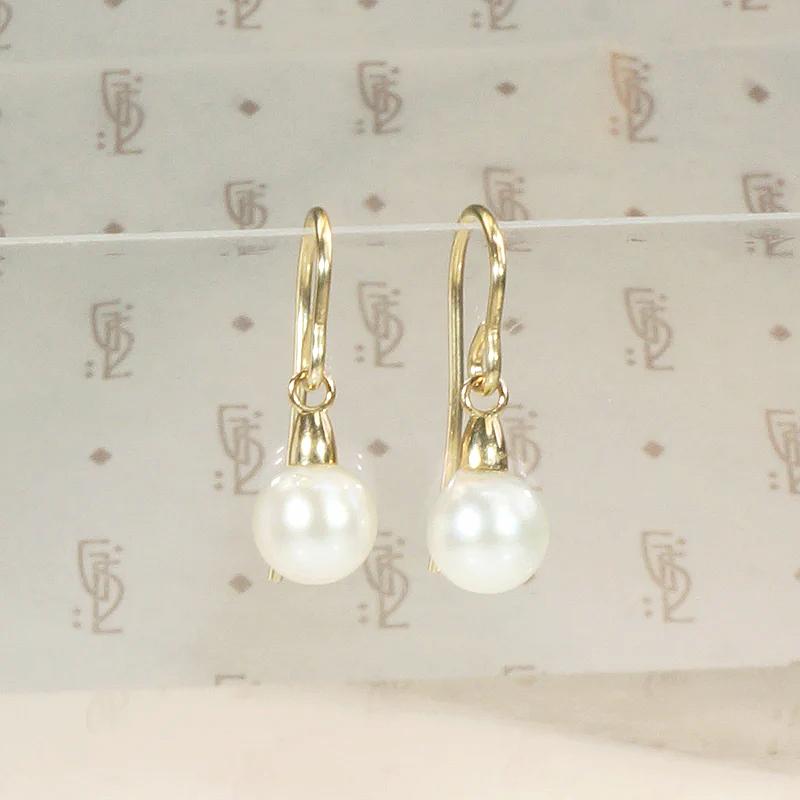 Tasteful Cultured Pearl & Gold Drop Earrings