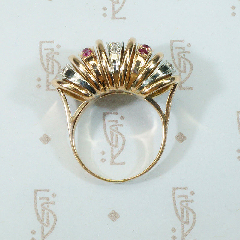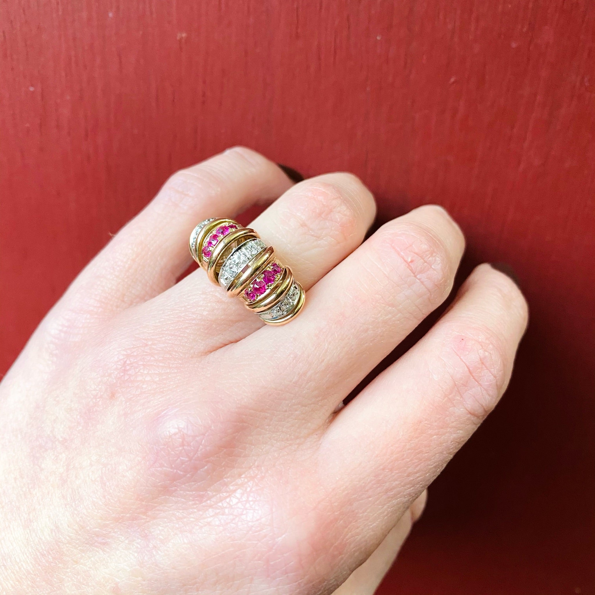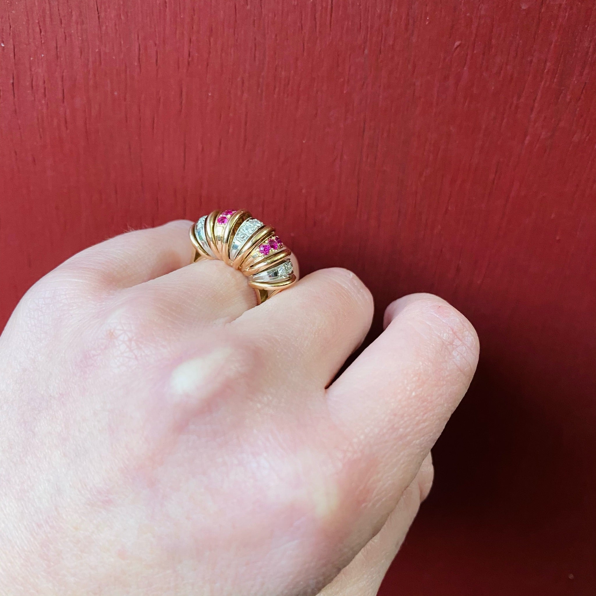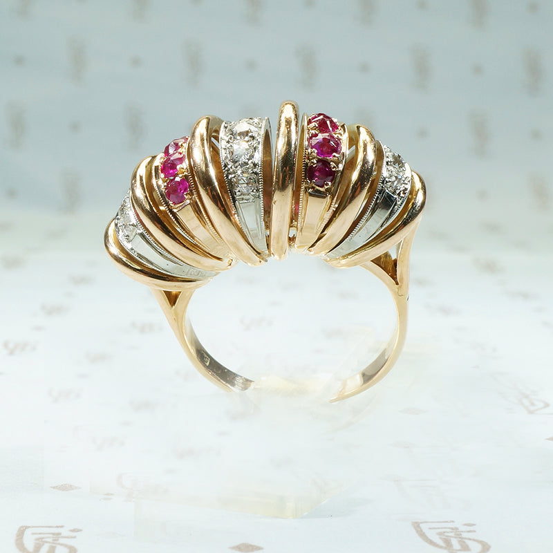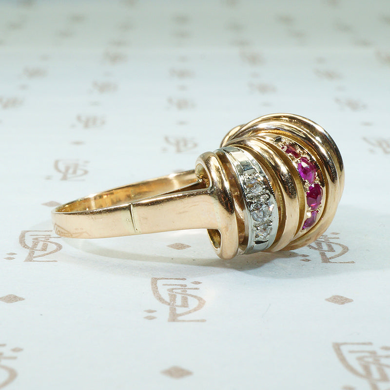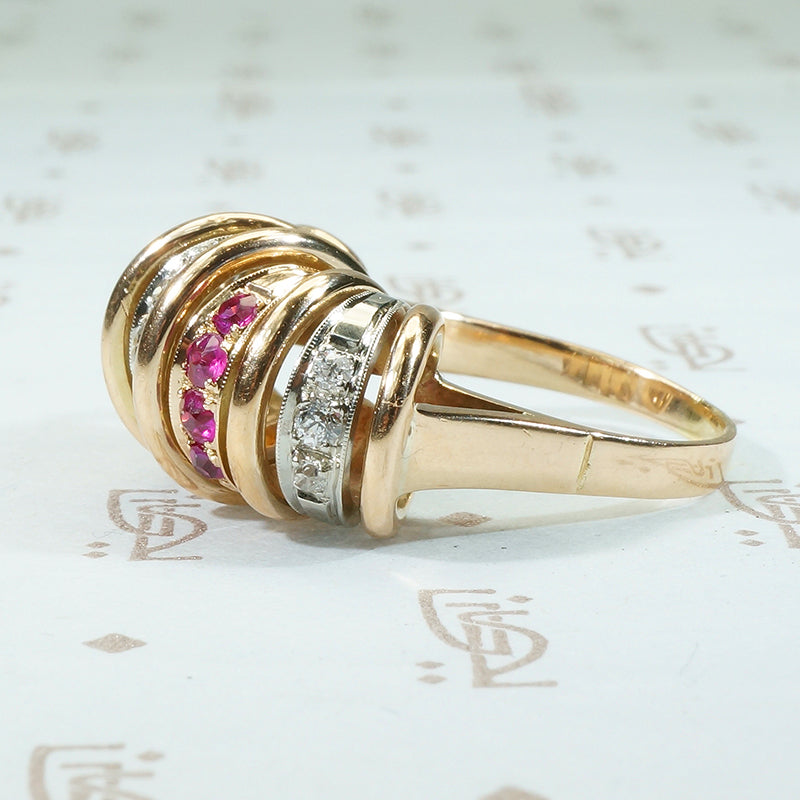 Retro Platinum and Rose Gold Diamond and Ruby Ring