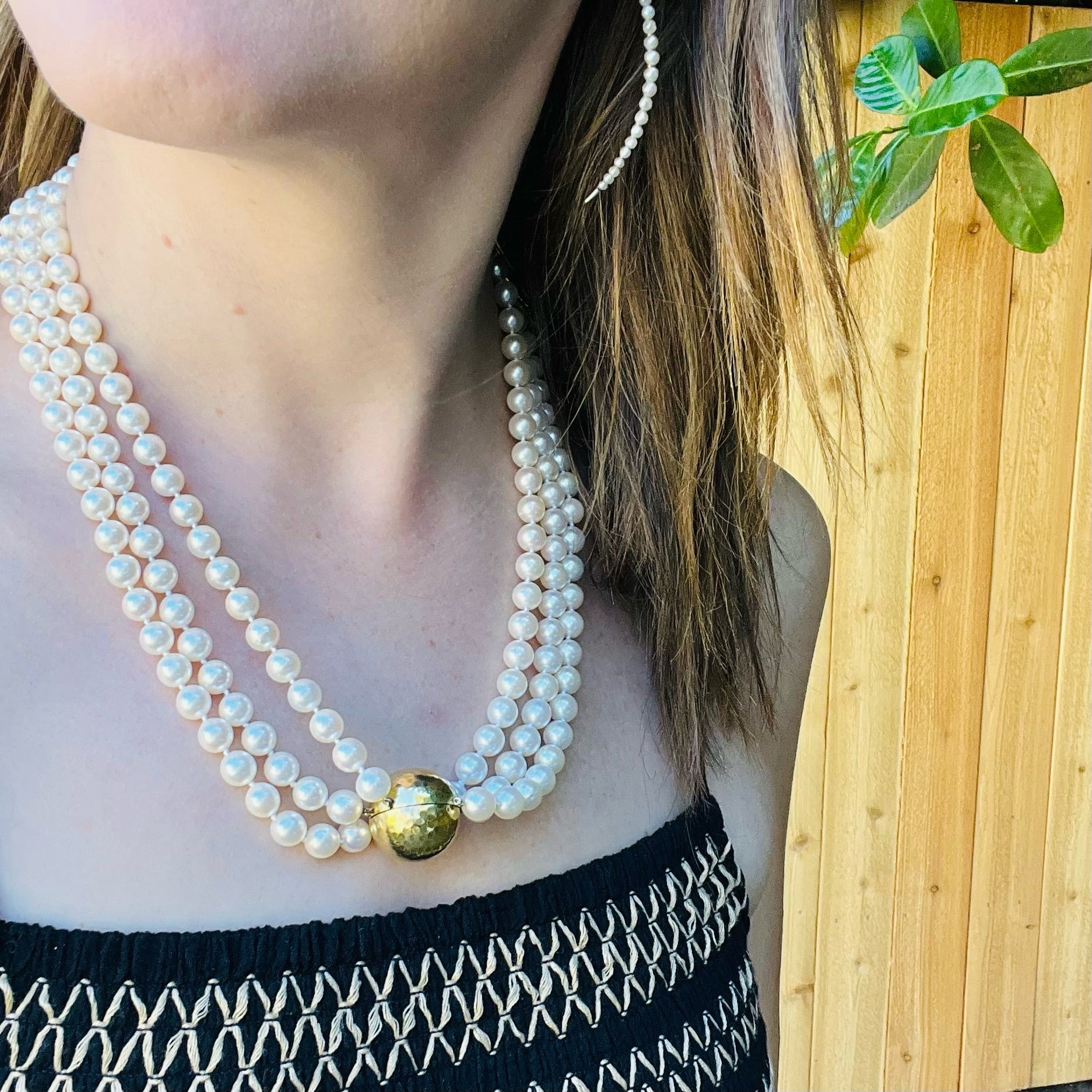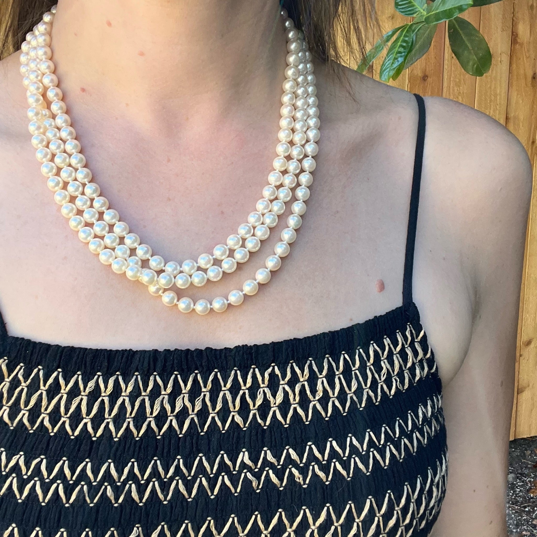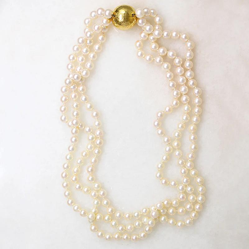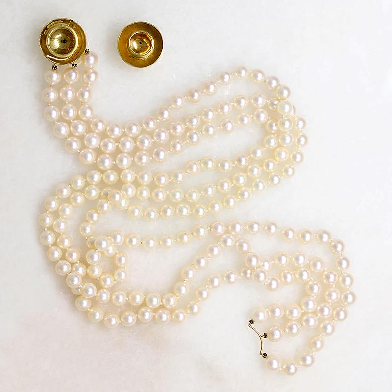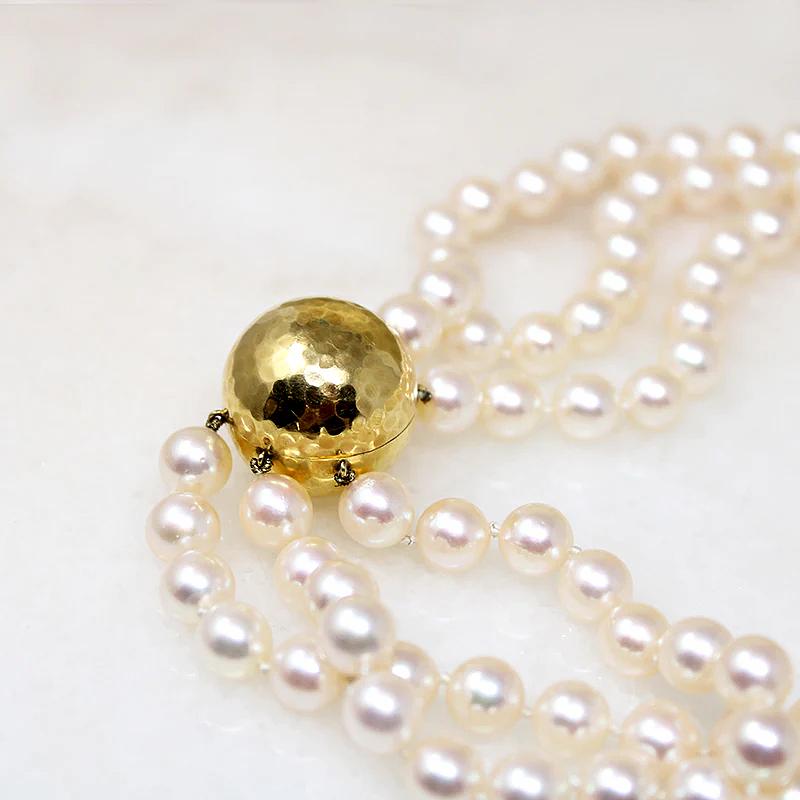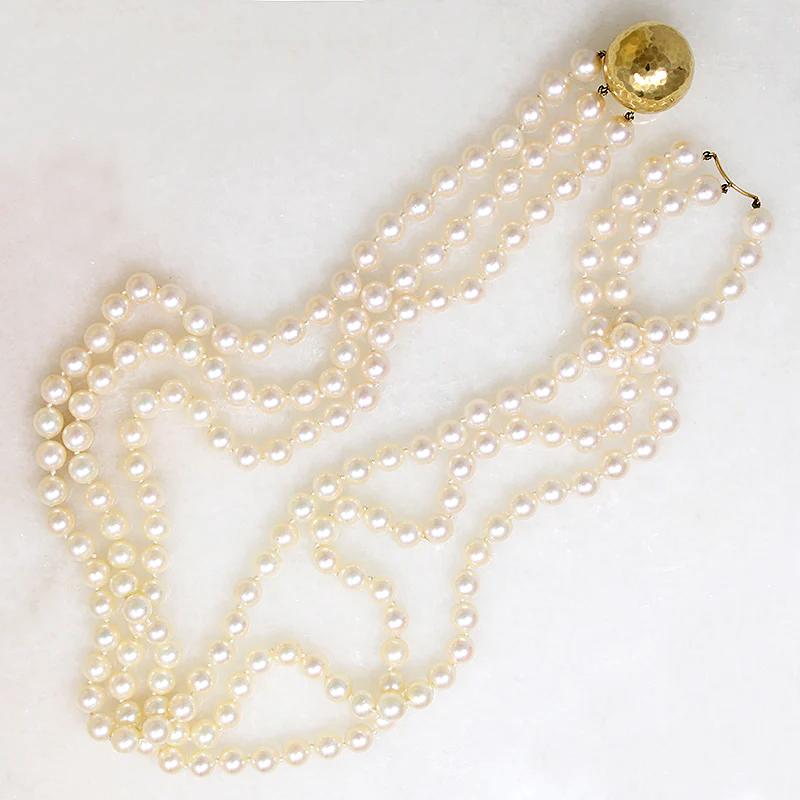 Three Strand Akoya Pearl Necklace with 18k Clasp