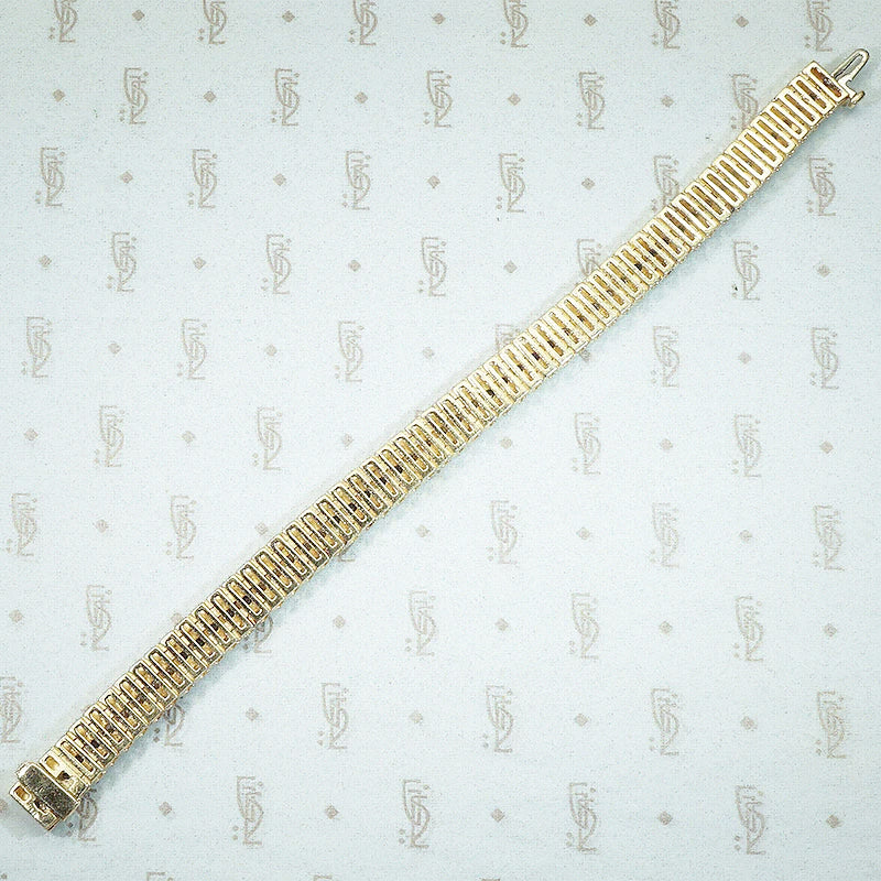 Details.....The bracelet is 7" long 8.3mm wide and 4.2mm thick. Excellent Vintage Condition. You should always expect some wear on vintage and antique jewels, we consider it part of the charm.