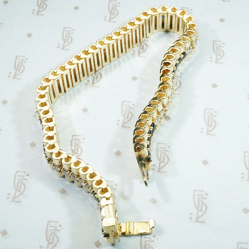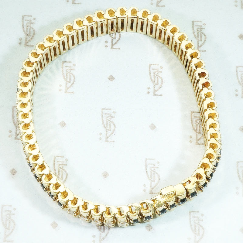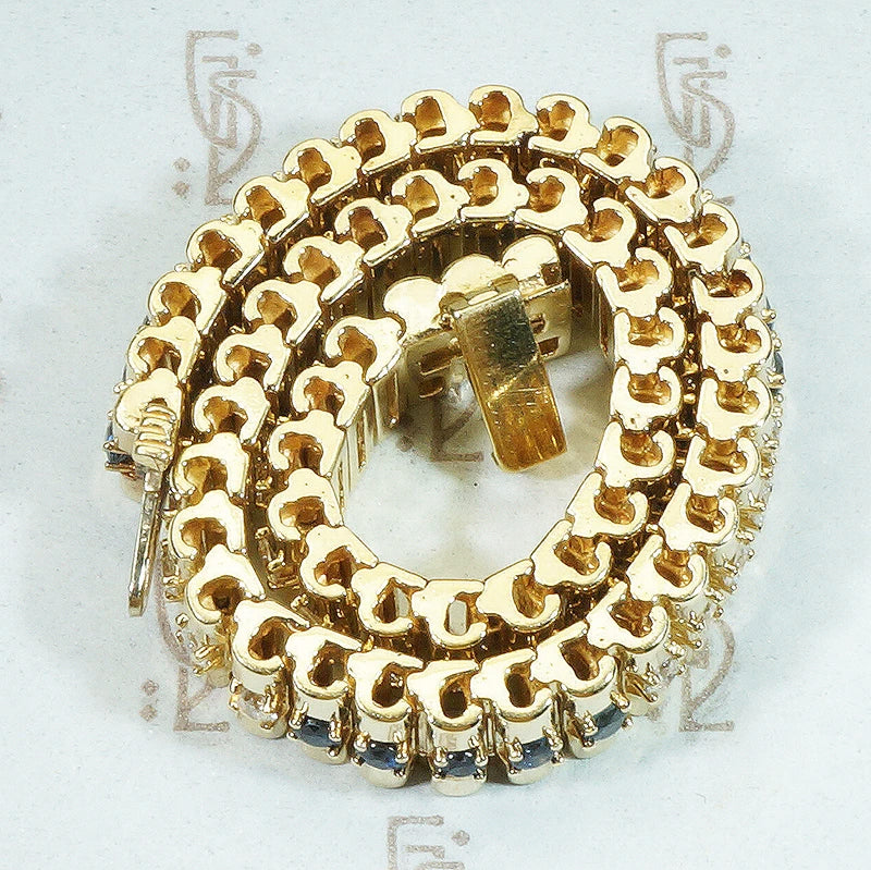 Diamond & Sapphire Details.....There are 30 round modified brilliant cut medium-dark blue sapphires with a total carat weight 2.55. And 25 Round Brilliant Cut Diamonds with a total carat weight of 1.50. The bracelet weighs 39.07 grams.