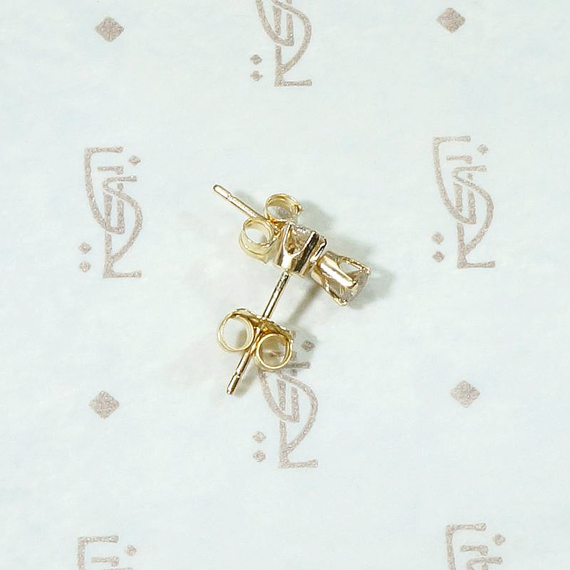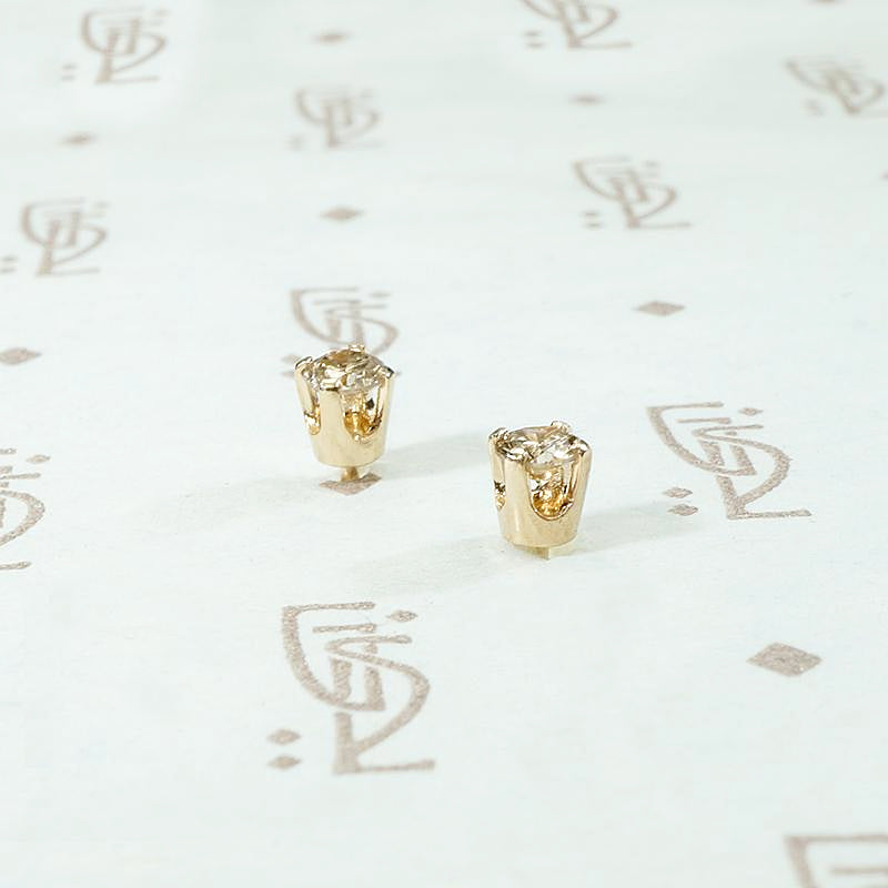 Gorgeous little studs set with vintage champagne diamonds. The petite diamonds have a 0.19 total carat weight. They have that wonderful effervescent hue we love about champagne diamonds. The settings are made from 14k recycled yellow gold. The four-prong setting is simple and secure. These diamond stud earrings are perfect for every day and their small size makes them ideal for a second ear piercing.