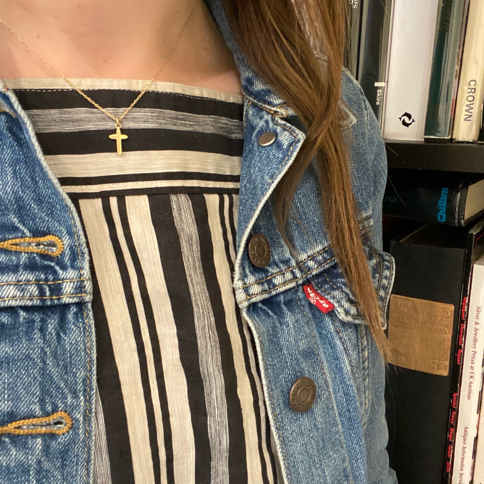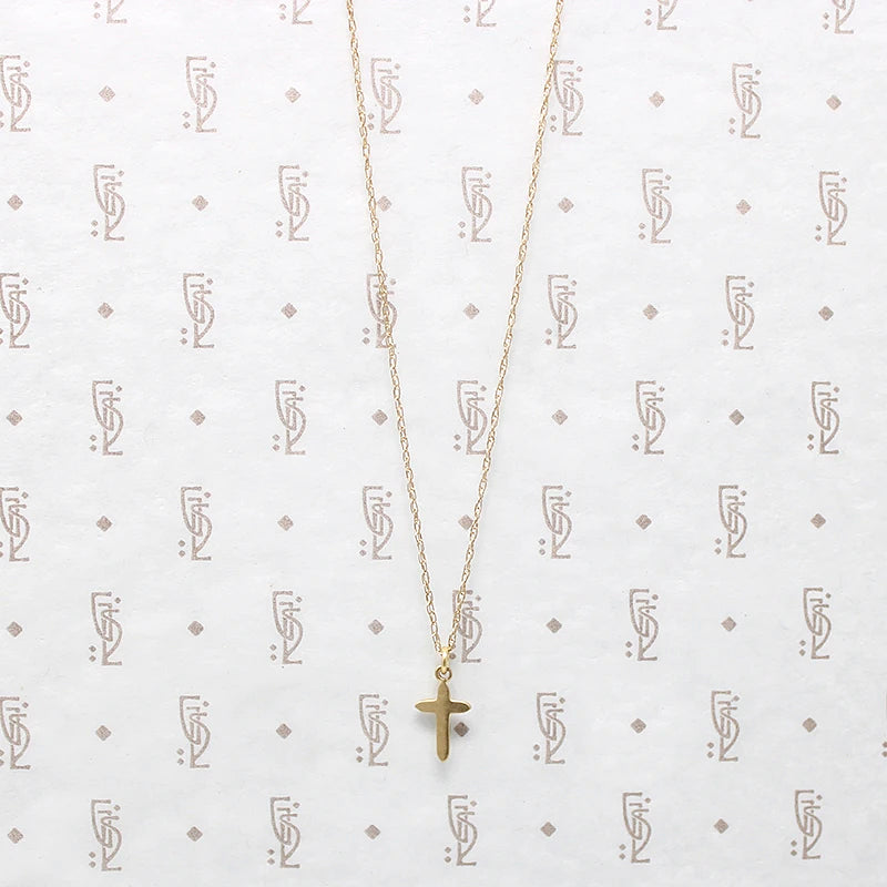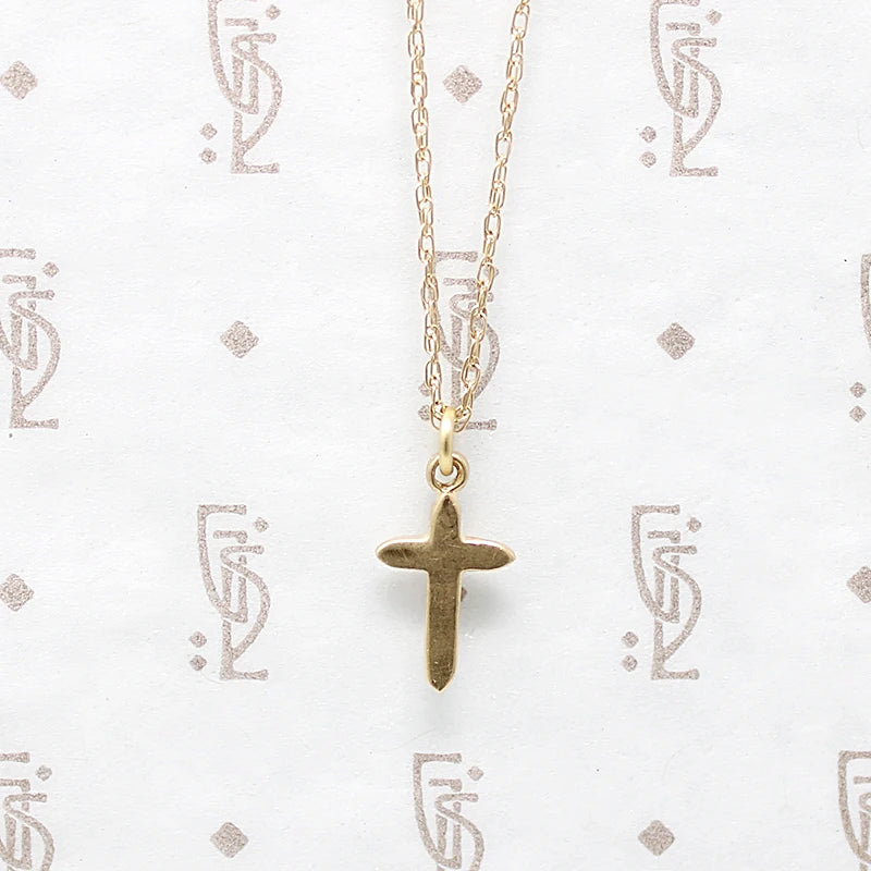 A tiny vintage 14k gold cross on a recycled 14k gold chain. So petite. This cross is a nice proportion for a child, it would make a lovely first communion present. Circa 1950.