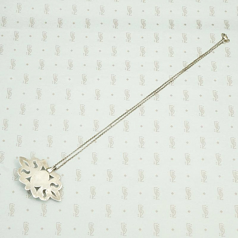 Details.....The pendant measures 1.95" by 1.23" and the sterling silver chain is 16" long. In Very Good vintage condition. Small imperfections are to be expected in vintage and antique jewelry, we consider it to be part of their charm.