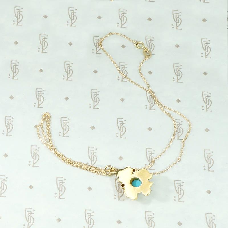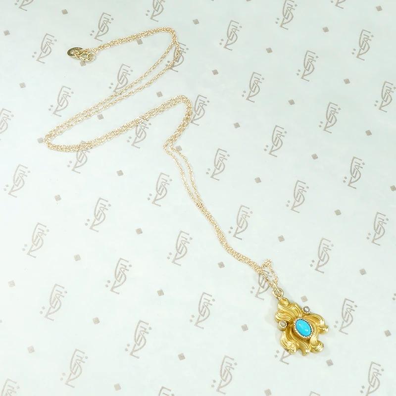 Art Nouveau Gold Iris Pendant with Turquoise & Pearl