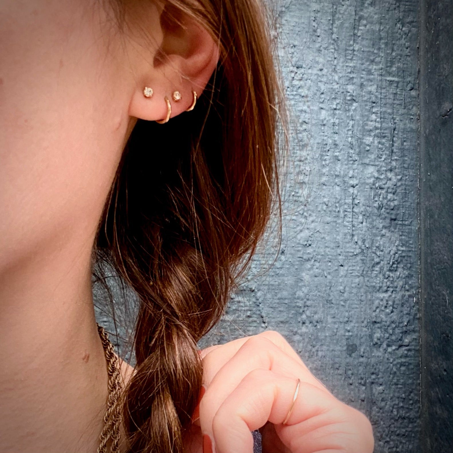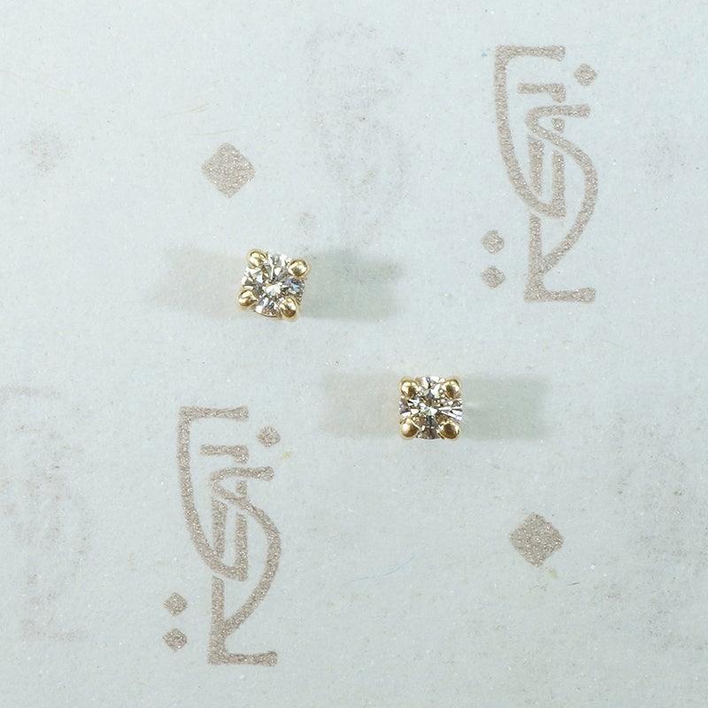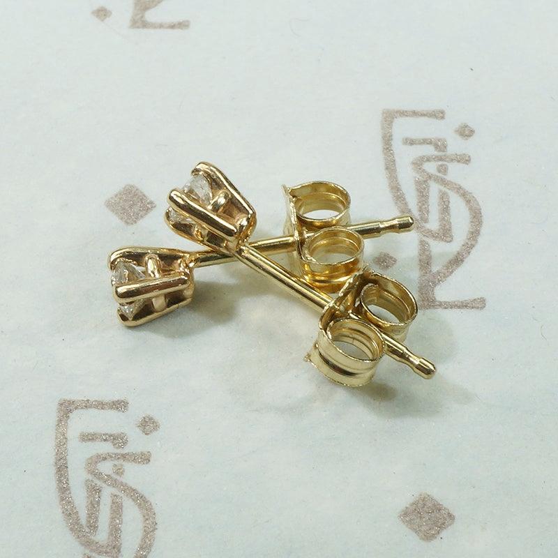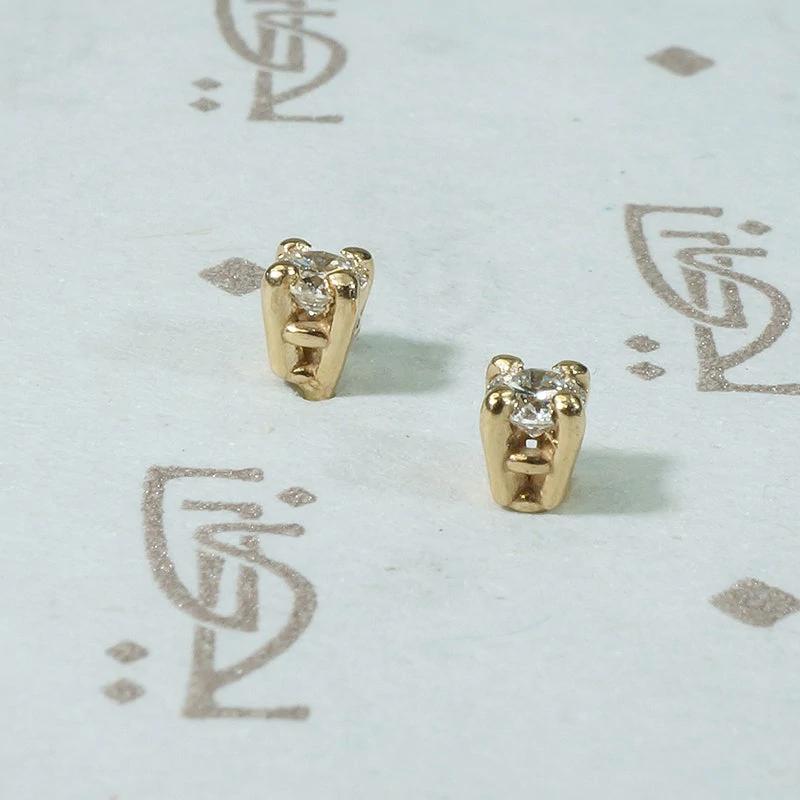 Sparkly vintage diamonds are set in recycled 14k yellow gold four-prong basket settings. The diamonds have a 0.15 total carat weight. Ideal for daily wear and the perfect size for a second piercing. Absolutely timeless, always in style.