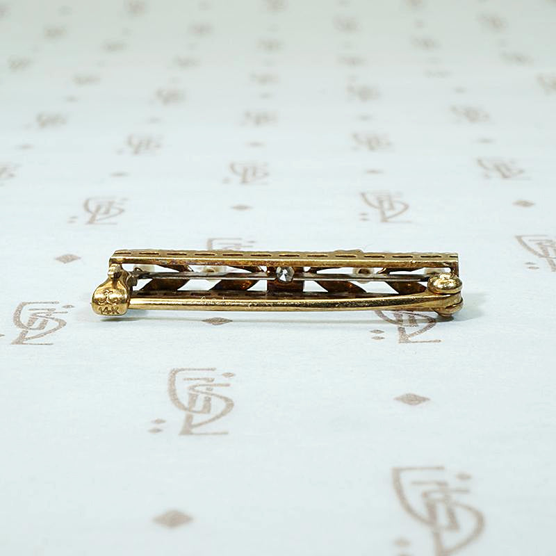 Details......Brooch measures 0.98" by 0.30". In Excellent Vintage Condition. You should always expect some wear on your vintage and antique jewels, we consider it part of the charm.
