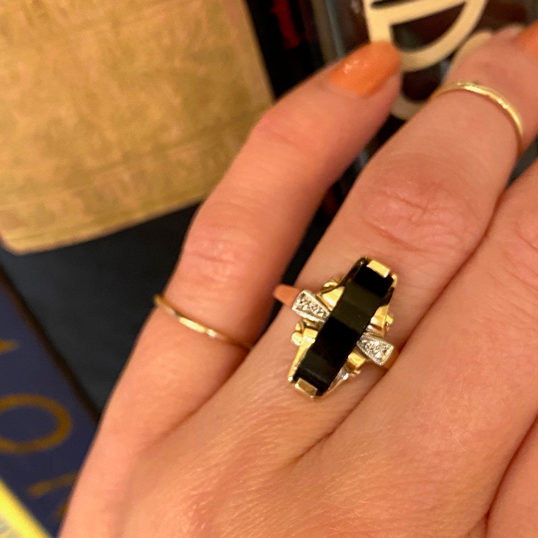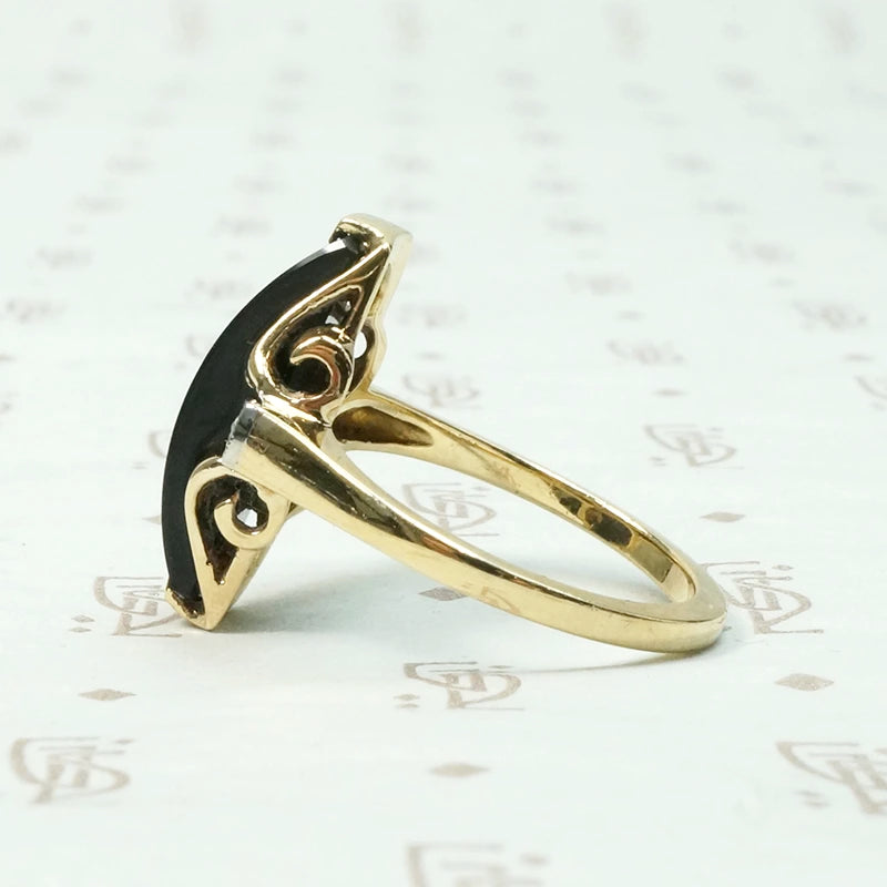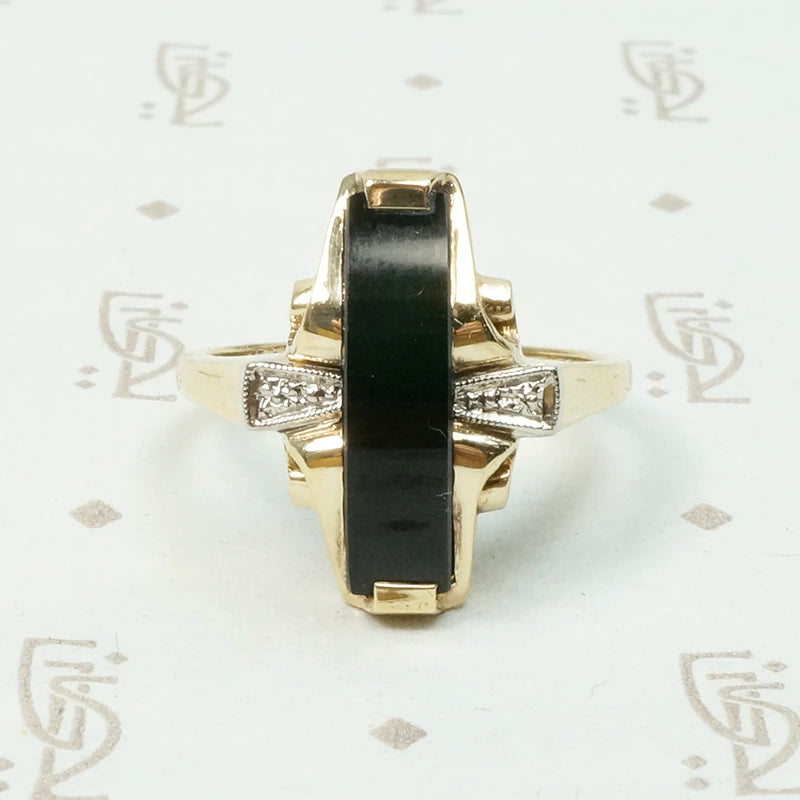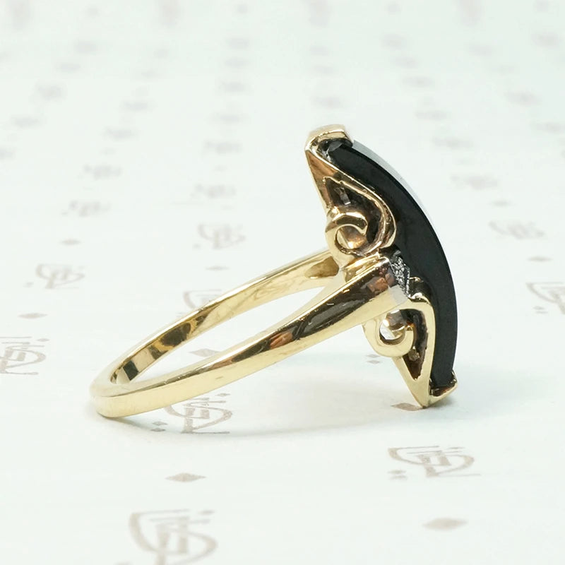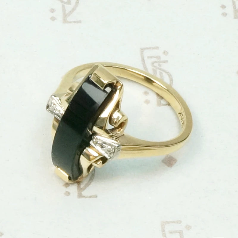 Unusual Two Tone Gold Onyx and Diamond Ring