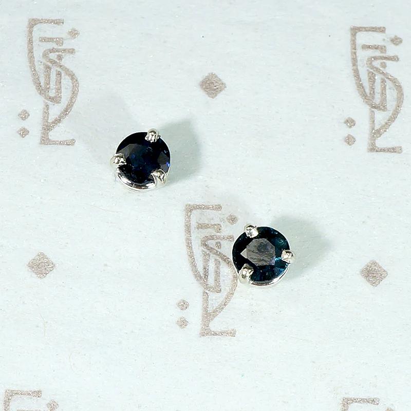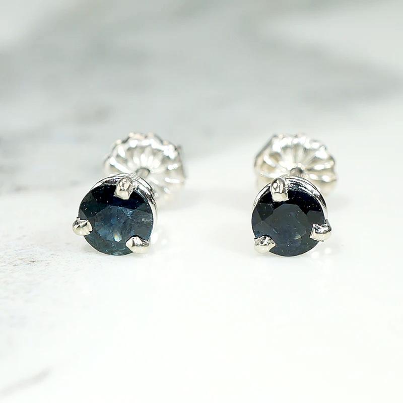 Velvety Midnight Blue Sapphire Stud Earrings