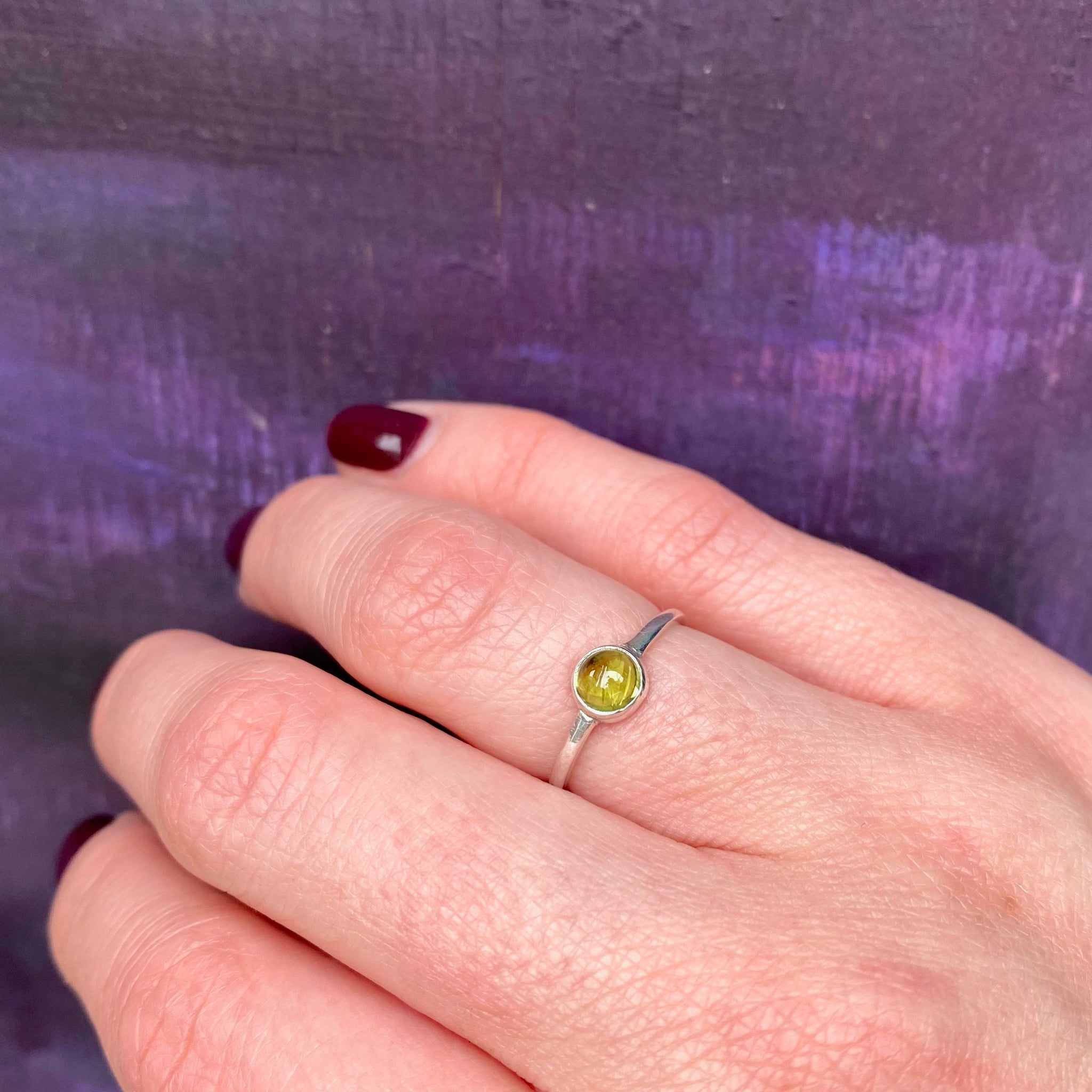 This pretty ring was hand cast by our metalsmith using recycled sterling silver and vintage peridot. All materials used in this ring, and in everything we make, is recycled. Love the Planet Love yourself.