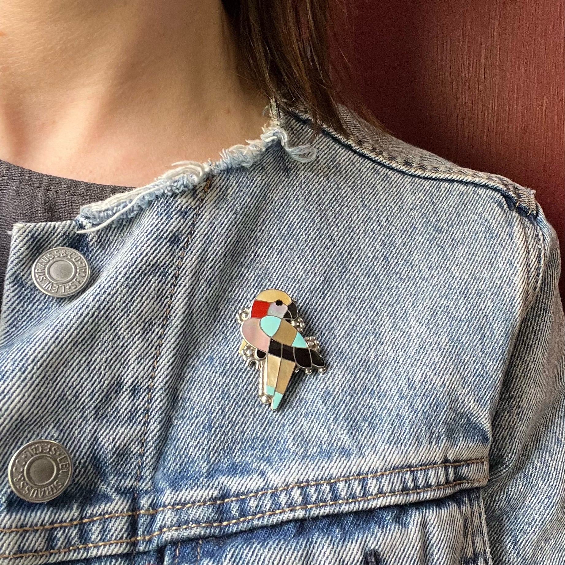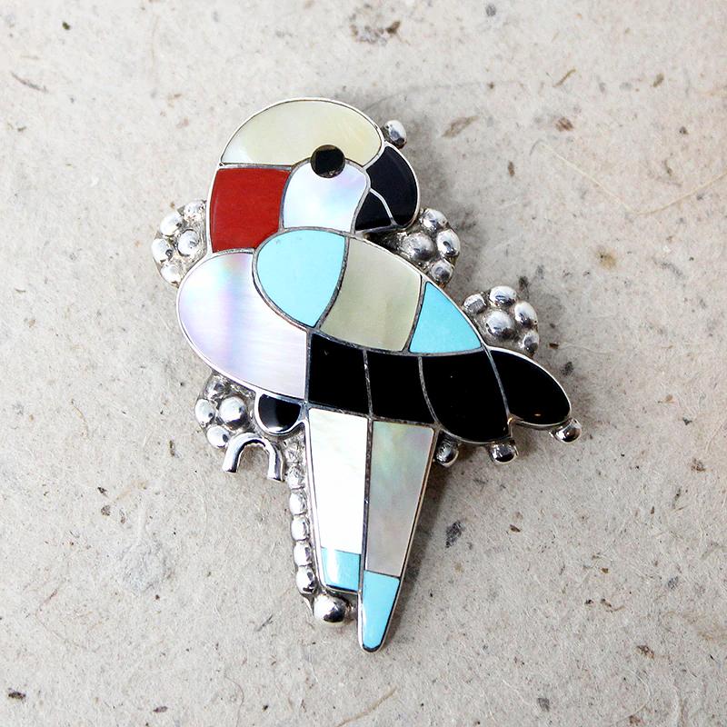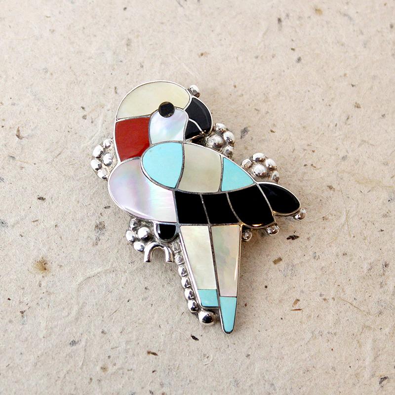 Vibrant Zuni Inlay Wild Parrot Brooch